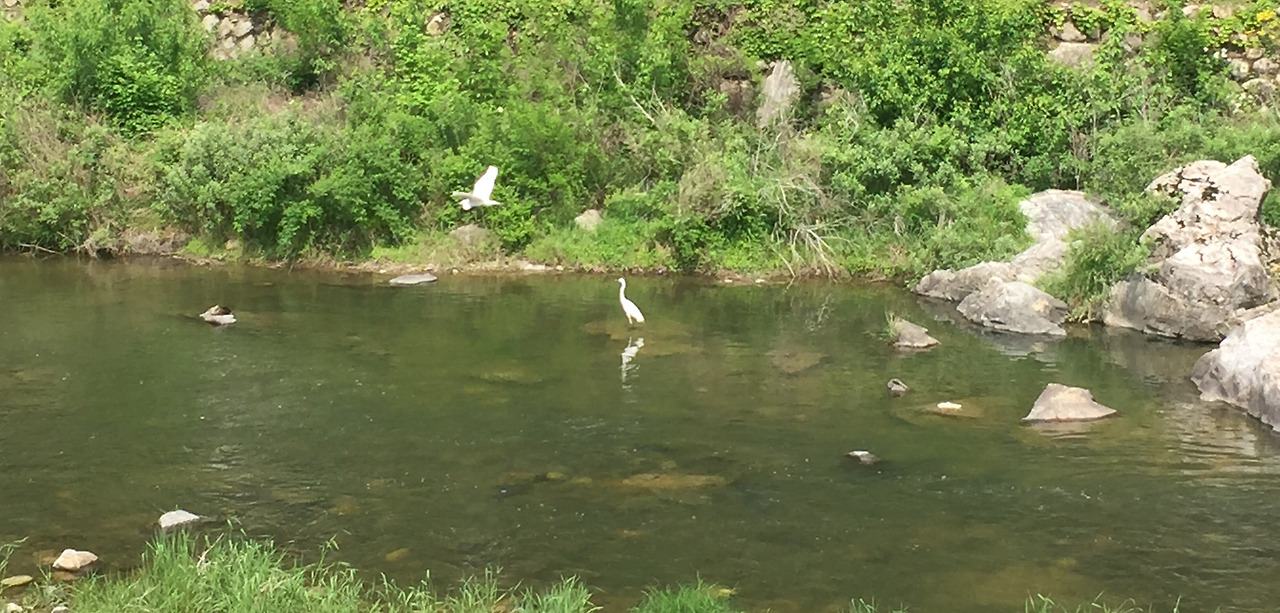 이곳을 사랑하게 된 이유는 또 있습니다. 다양한 새들을 만날 수 있기 때문입니다. 야트막한 하천이 흐르기 때문에 멋진 백로들이 날아와 먹이도 먹고 휴식도 취하는데 목이 긴 순백의 새가 어찌나 우아하고 멋있는지 넋을 놓게 만듭니다. 야생조류 가이드북을 보며 새 구경하는 즐거움이 아주 크답니다. 책을 살펴보니 백로 중에서도 중대 백로인 듯합니다. 오류가 있어도 백로들이 와서 따져 물을 것 같지 않으니까 그렇다고 믿습니다. 벽계천을 따라 날아다니는 백로 무리가 세 마리였다가 다섯 마리가 되기도 합니다. 우아한 날갯짓을 하며 비행하는 모습도 보여줍니다.