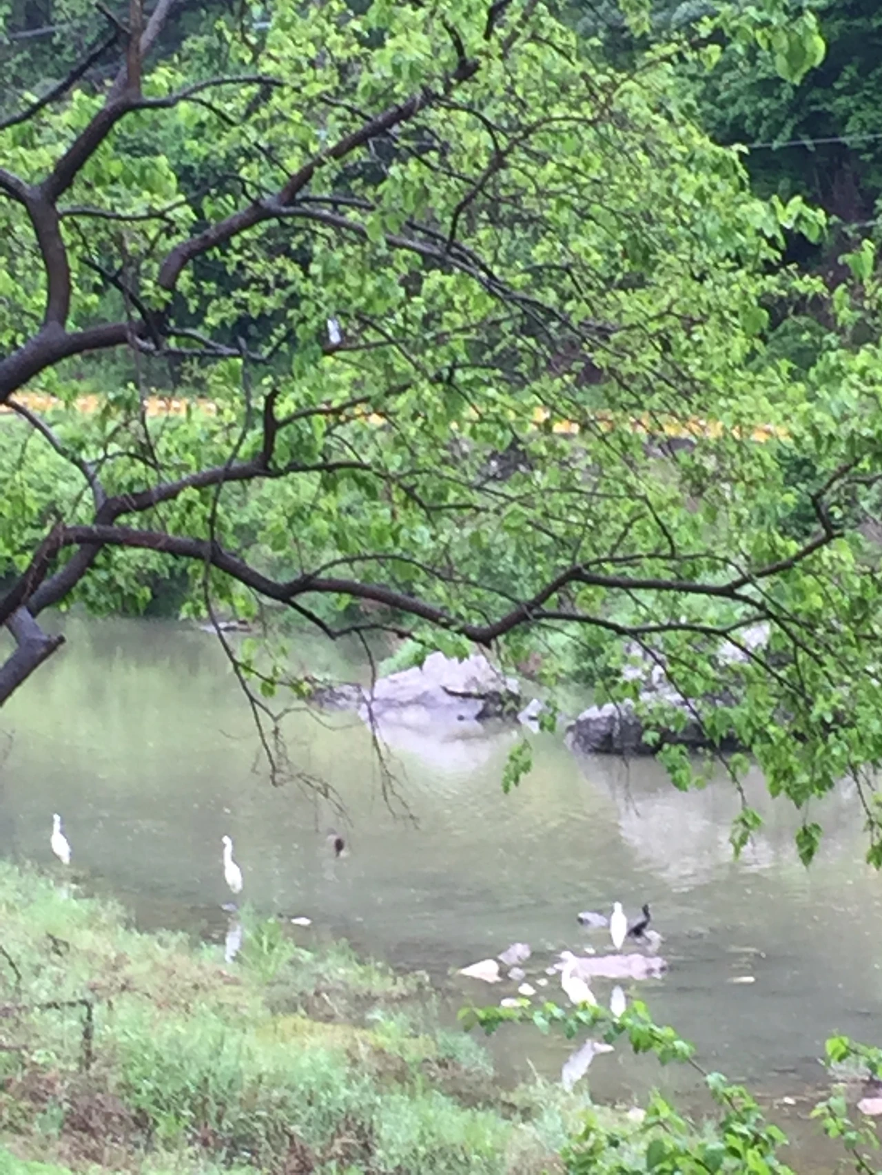 백로가 몇 마리 날아왔는데 그중 검은 새가 한 마리 끼어 있어요. 물에 떠있다고 다 오리인 줄 알았는데 부리가 뾰족한 것이 아무리 봐도 오리는 아닌 듯합니다.