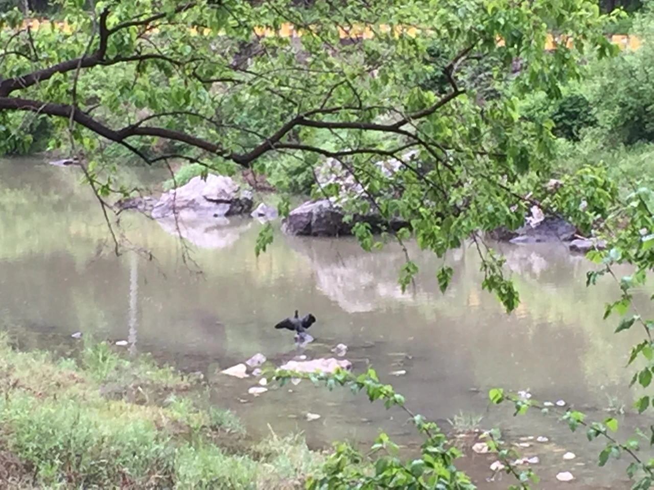 다시 야생조류 필드 가이드를 펼칩니다. 우선 오리과에서 찾아보는데 비슷한 새는 없어요. 책을 열심히 뒤지고 있는데 검은 새가 돌 위에 서서 날개를 활짝 펴고 한참 있는 게 보입니다. 뭐 하는 걸까요?