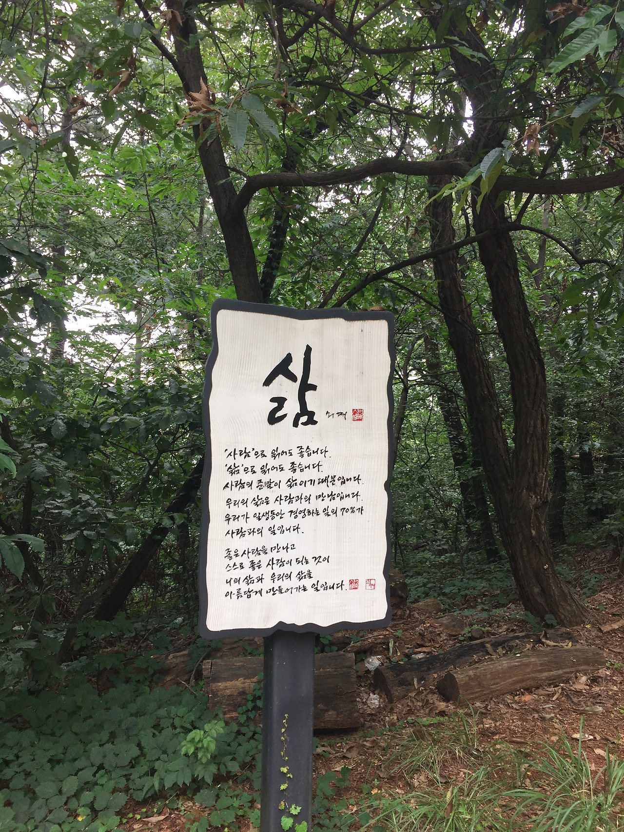 구로 둘레길의 일부인 '더불어 숲' 길은 더불어 함께 사는 삶을 강조했던 고 신영복(1941~2016) 교수를 기념하기 위해 조성된 산책로다. 서울대학교 경제학과를 나와 육사에서 경제학 교관으로 재직하던 중 1968년 통일혁명당 사건에 연루되어 구속, 무기징역을 선고받고 20년 20일 동안 수감생활을 하다 1988년 특별 가석방되어 출소한 후 작가로, 교수로 많은 글과 강의를 통해 사람에 대한 애정을 토대로 한 관계론을 설파했다. 그가 수감 중 지인들에게 보낸 편지를 모은 ‘감옥으로부터의 사색’, 강의노트를 정리한 ‘담론’ 등에는 깊은 울림을 주는 글귀들이 가득하다. 어릴 적부터 할아버지 슬하에서 붓글씨를 시작한 고 신 교수는 감옥에서도 오랫동안 붓글씨를 연마해 서도의 경지에 다다랐다.