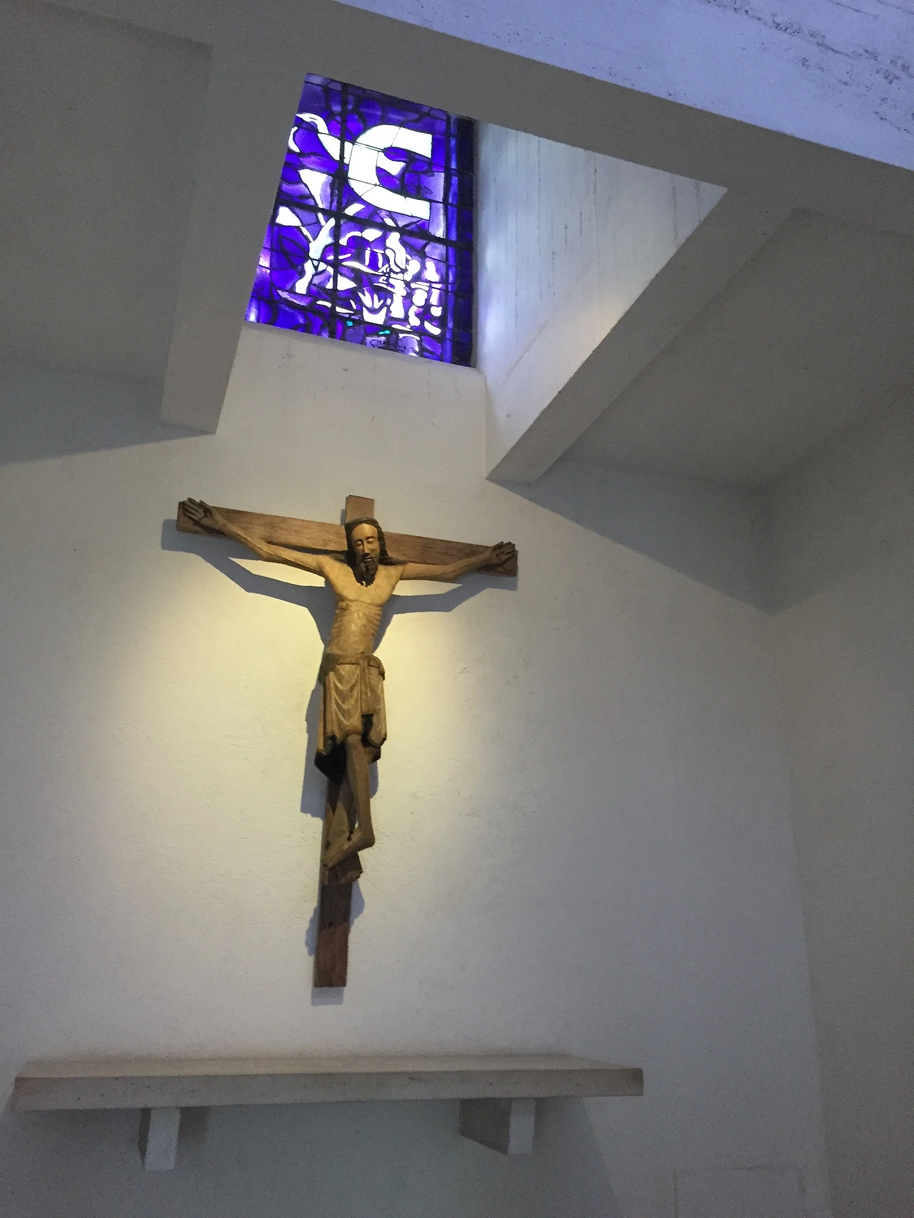 미술관 마당에는 마그 부부의 아들을 위해 지은 작은 예배당이 있다. 마그 재단 미술관이 생기게 된 계기를 제공한 곳으로 아담하지만 그 안에서는 특별한 예술적, 영적 체험을 하게 된다. 브라크의 푸른빛 스테인드글라스를 통해 들어오는 빛 때문인 것 같다. 나무로 만든 십자가상의 예수님 얼굴에는 고통보다는 평화가 깃들어 있다.