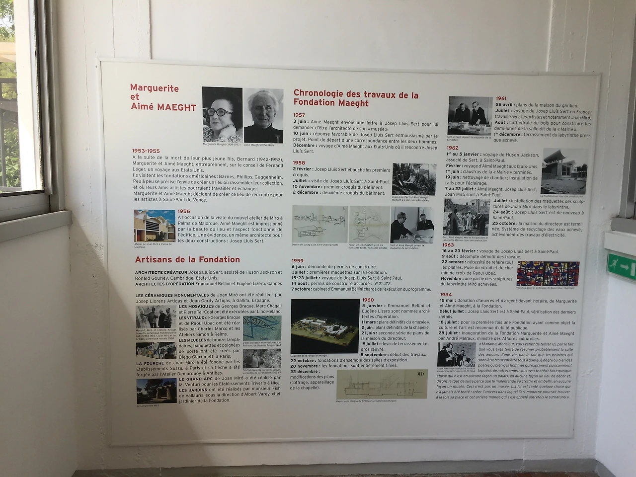 예술을 사랑하는 미국의 부호들은 미술재단을 만들어 미술관을 짓고 자신들이 수집한 작품을 대중들과 공유하고 있었다. 반스, 필립스, 구겐하임 등 재단미술관을 돌아본 마그 부부는 당대에 활발하게 활동하는 예술가들이 작품도 하면서 교류하는 공간을 생폴 드 방스에 만들겠다는 계획을 세운다. 전쟁으로 파괴된 예술 생태계에 활기를 불어넣어주는 역할을 할 수 있는 예술 플랫폼을 구상했다. 1956년 마요르카에 있는 후안 미로의 미술관 겸 작업실을 방문한 부부는 주변 환경과 멋지게 어우러진 건축과 분위기에 매료돼 건축가 조셉 루이스 세르(Josep Lluis Sert)에게 미술관 설계를 의뢰하게 된다.