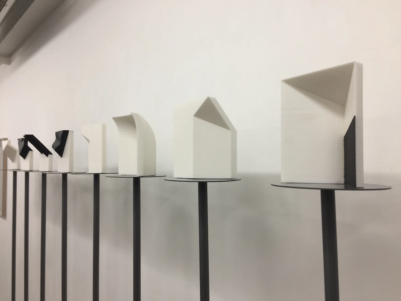 “3차원을 2차원으로 압축해서 나온 일루젼을 3D 프린터를 이용해 3차원으로 풀어내 본 것입니다. 보이는 것은 사진과 같지만 3차원으로는 비뚤어져 나오는 것이 흥미롭습니다.”