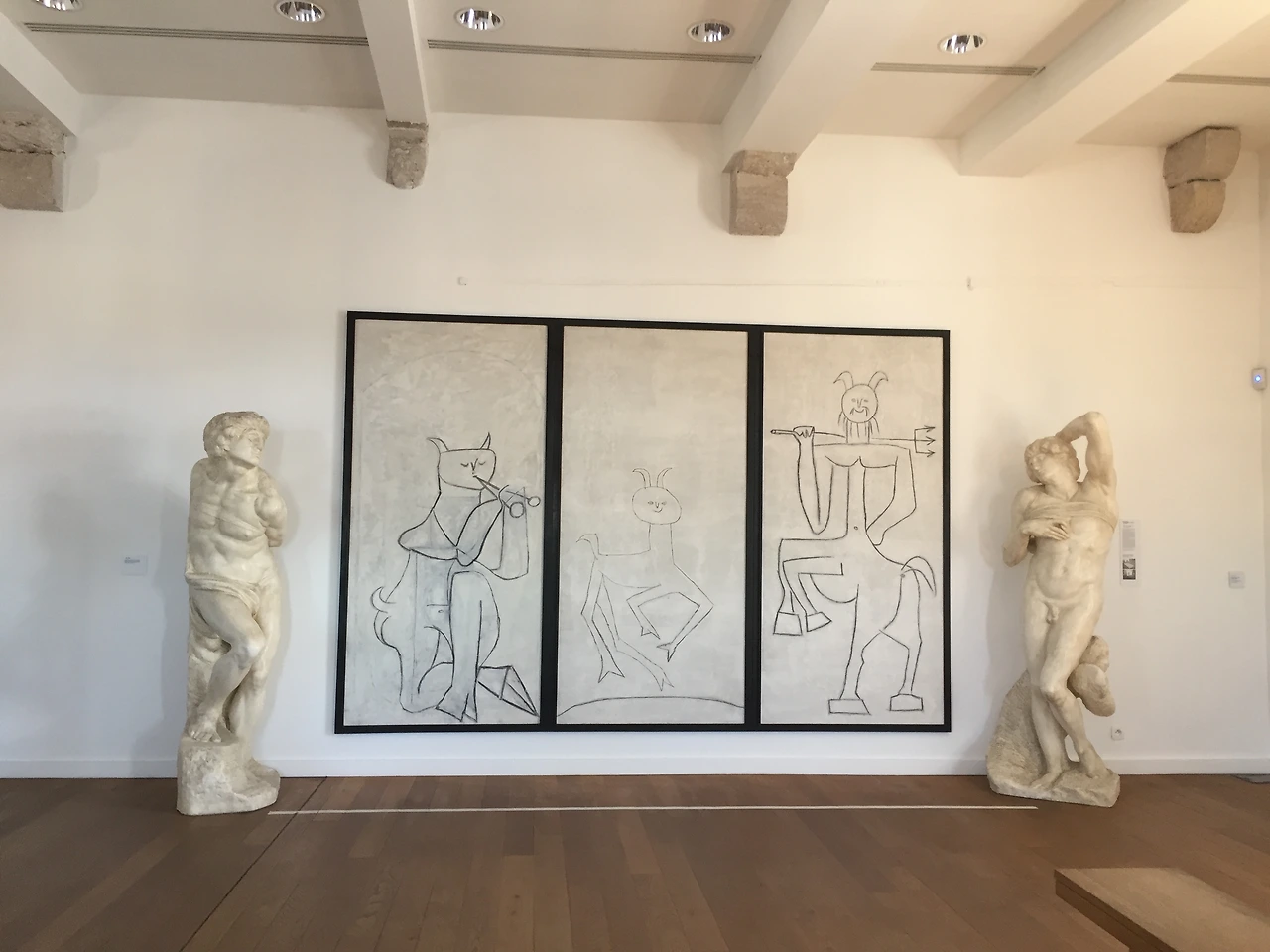 프로방스의 맑은 공기와 강한 햇살, 푸르른 바다를 사랑했던 파블로 피카소(1881~1973)는 생폴 드 방스를 자주 찾아 휴가를 보내곤 했다. 그러던 중 1939년 고고학 박물관으로 운영되던 앙티브의 그리말디 성을 방문했다. 로마 시대의 기초 위에 연한 크림색 돌로 지어진 견고한 성채가 푸른 지중해 바다와 어우러져 만들어 내는 환상적인 풍경에 매료됐다. 그로부터 7년이 지난 1946년 이곳으로 다시 돌아온다. 앙티브 박물관 관장이던 도르 드 라 수셰르가 성채의 위쪽에 있는 밝고 넓은 홀을 피카소가 아틀리에로 사용할 것을 제안했기 때문이었다. 소박한 마을도 좋았고 지중해가 코앞에 내려다 보이는 견고한 성채도 마음에 쏙 들었다. 이곳에서 피카소는 두 달간 머무르며 소묘 등 많은 작품을 제작했다. 그리고 일부를 이곳에 기증했다.
