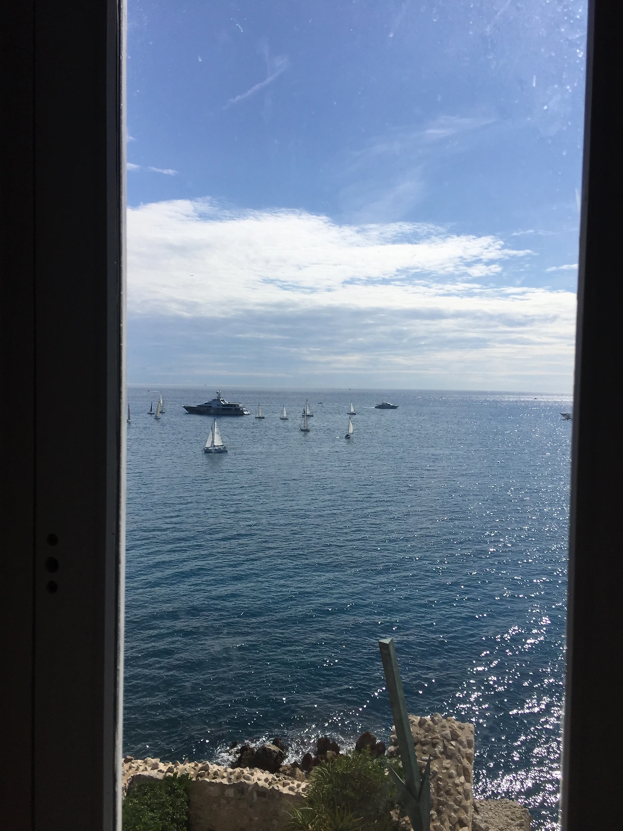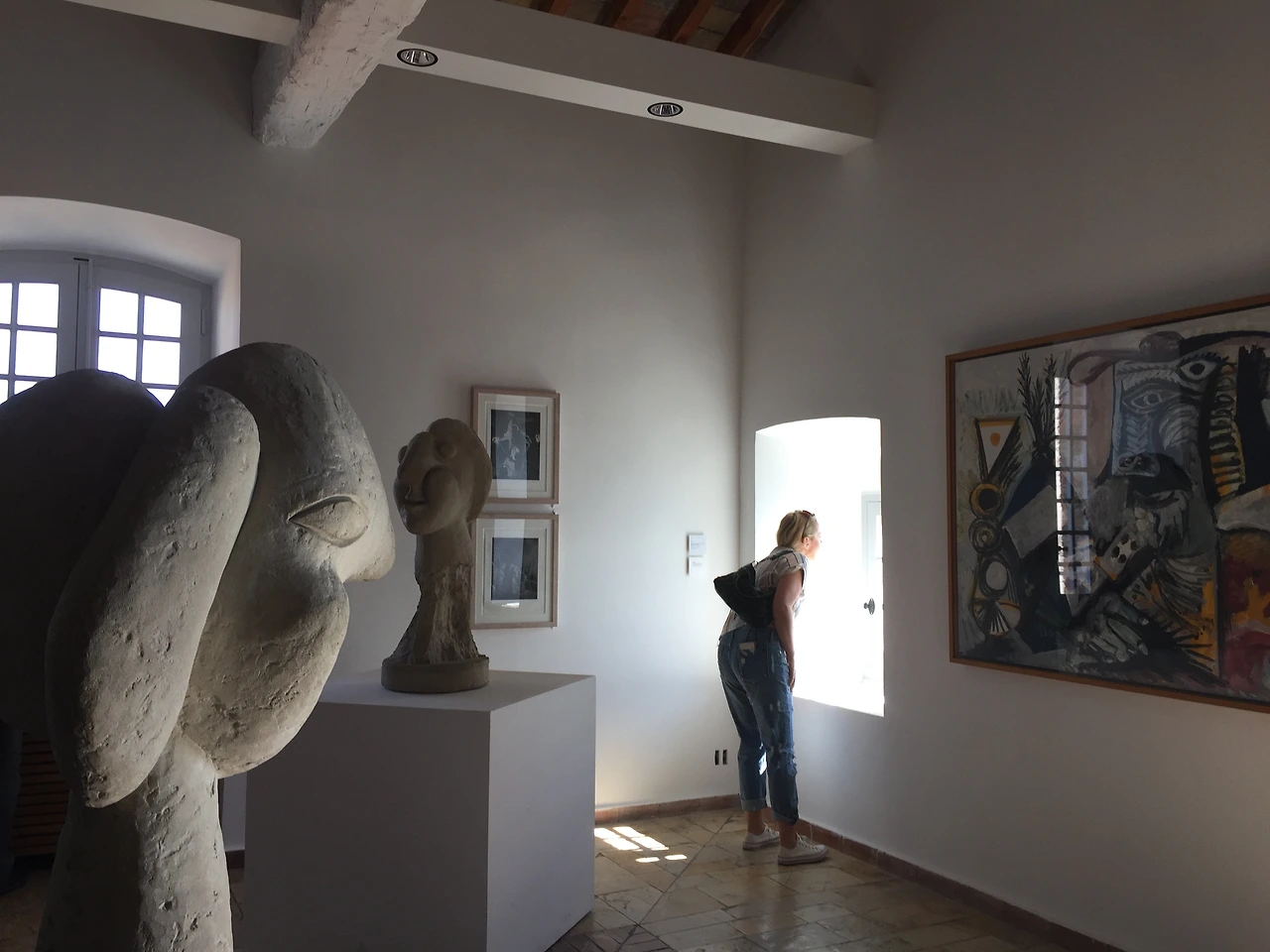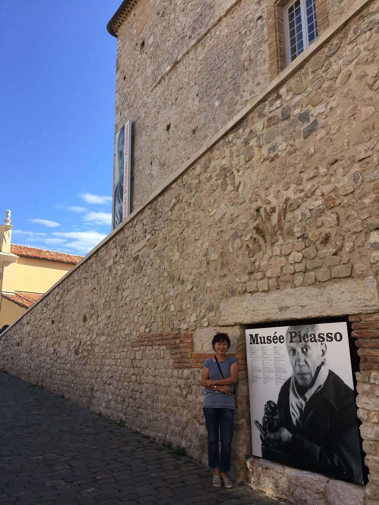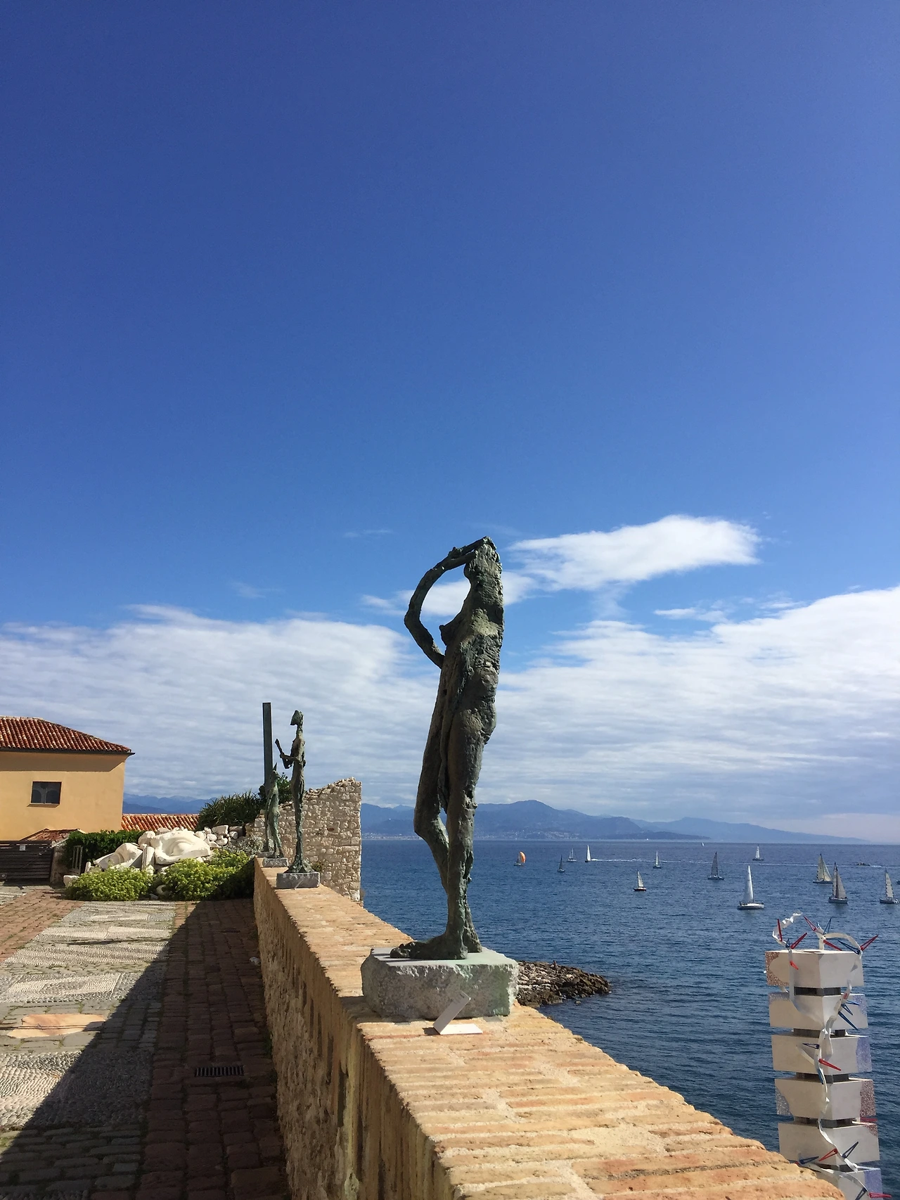 피카소가 작업실로 사용했던 꼭대기층 방의 창을 통해 바다가 보인다. 밖으로 나와 테라스에서 바라보니 파란 지중해 바다는 한 폭의 그림이다. 저 멀리 바다의 잔 물결이 은빛으로 빛나고 흰색 돛을 단 요트들이 그림처럼 떠 있다. 테러스에서 바라보는 지중해는 그야말로 압권이었다.