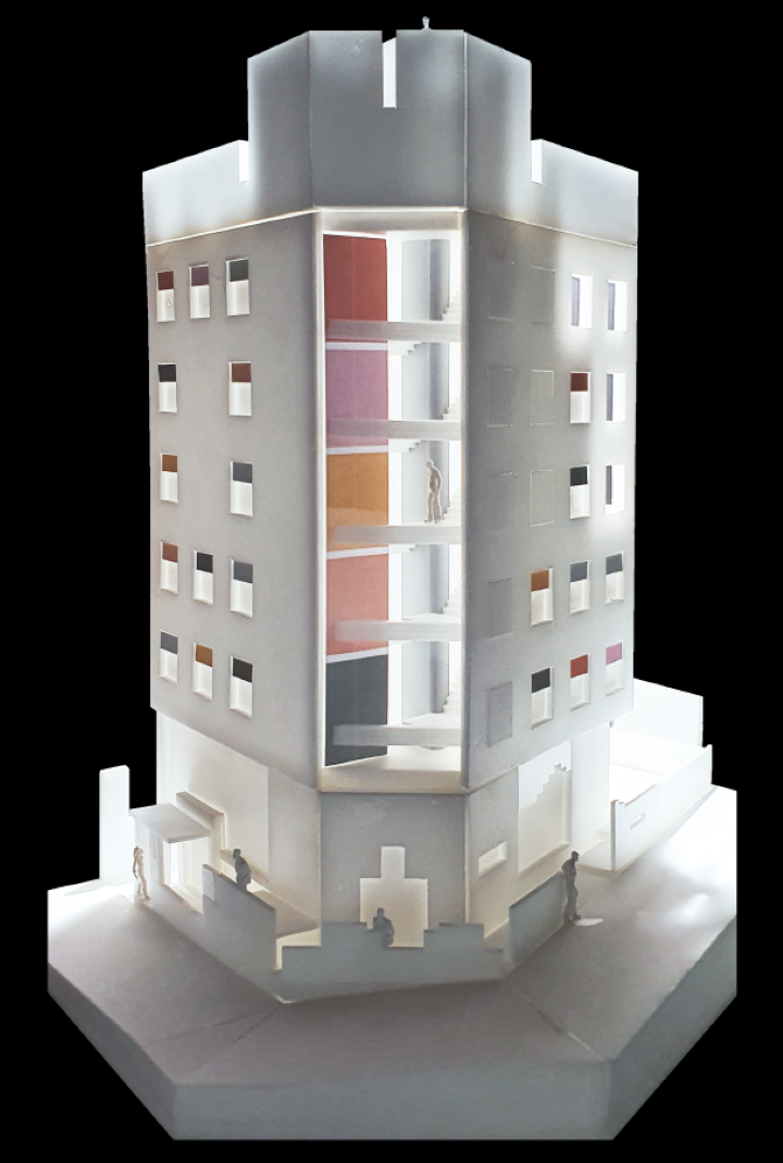 “계단실은 밤에도 불이 환하게 켜져 있어 외부에서 보면 마치 등대처럼 보여요. 이 건물이 들어서기 전에는 어두운 밤 골목을 혼자 다니기가 어려웠는데 건물이 골목을 환하게 밝혀 줍니다. 이곳에 거주하는 젊은이들이 왔다 갔다 하고 소비를 하면서 주변에 미치는 영향도 긍정적입니다. 사회적 의미로 코리빙을 보면 많은 의미가 있습니다.