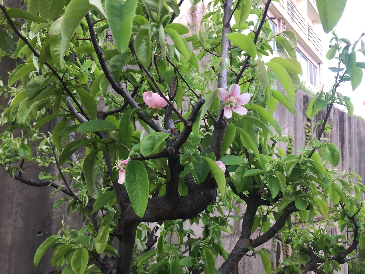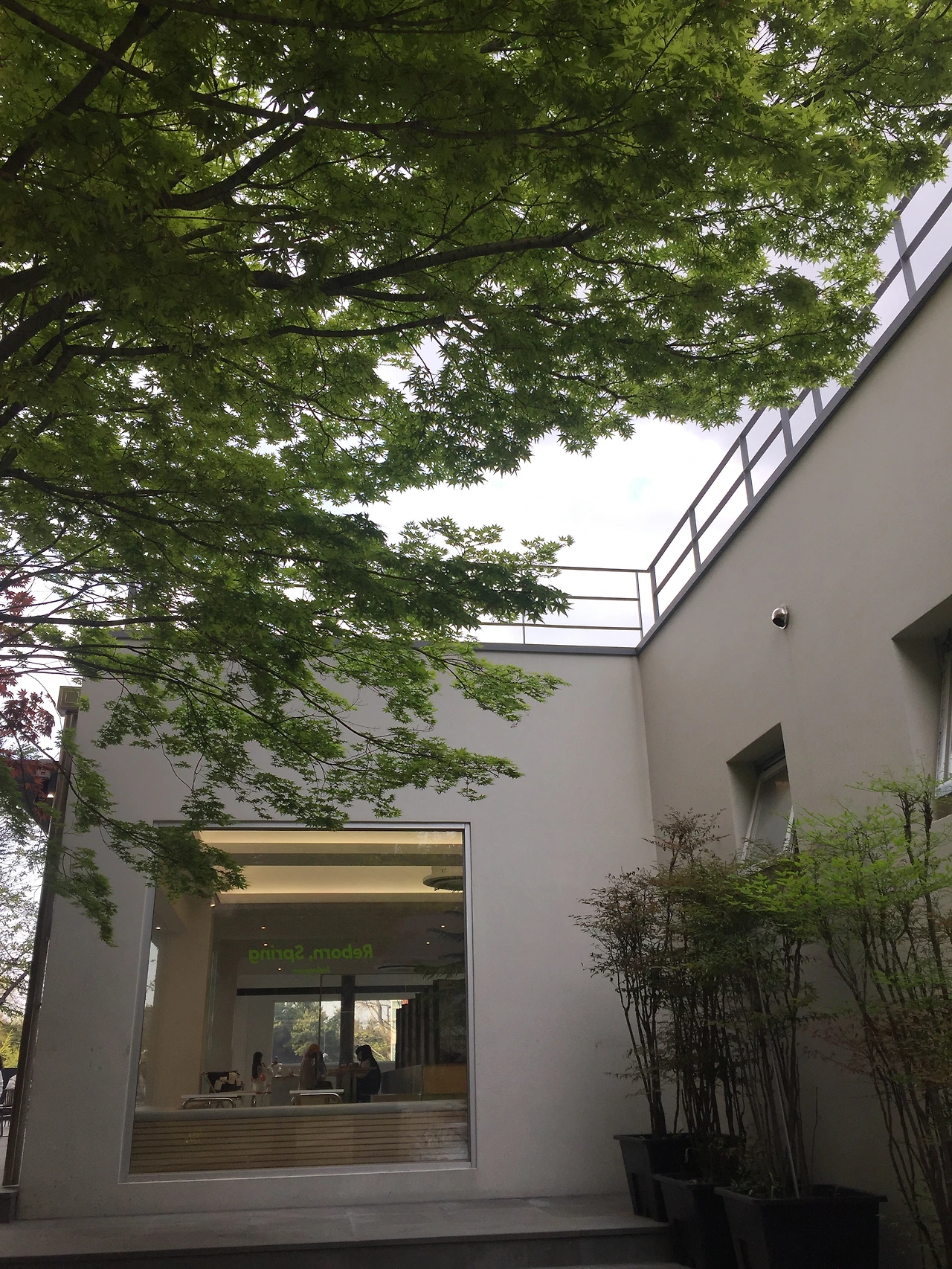 사람들이 찾아오고 건물은 생기를 찾았다. 카페의 2층과 연결되는 정원의 꽃사과나무(?)에도 예쁜 꽃이 발그레 피어있었다.