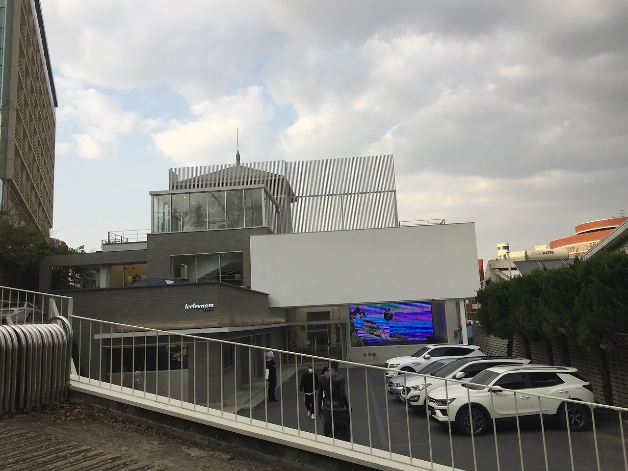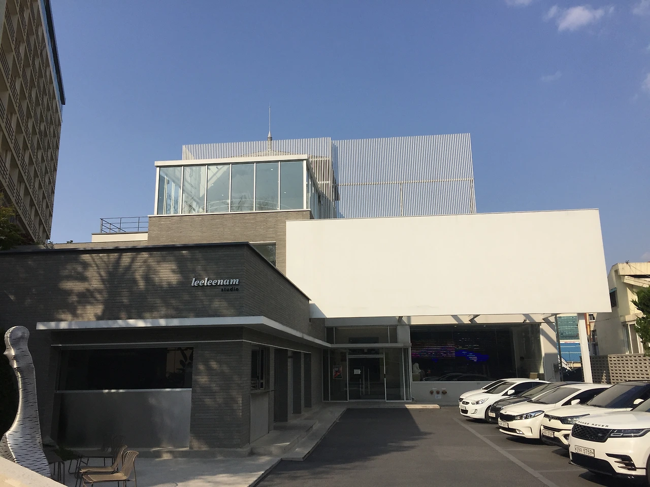 시야가 탁 트인 옥상 공간이 있는 2층 건물은 깔끔하고 현대적인 느낌이 물씬 풍긴다. 유리로 투명하게 처리된 1층에는 카페와 전시 공간이 위치하고 2층에는 카페와 이이남 작가의 작업실이 있다. 조각부터 미디어 아트까지 이이남 작가의 다양한 작품을 감상할 수 있는 카페와 전시공간이 유기적으로 연결되면서 물 흐르듯 자유로운 동선이 만들어져 건물은 살아있는 것 같다.