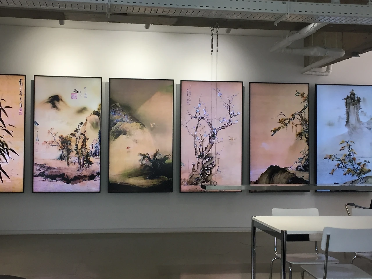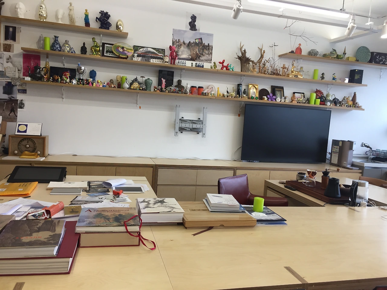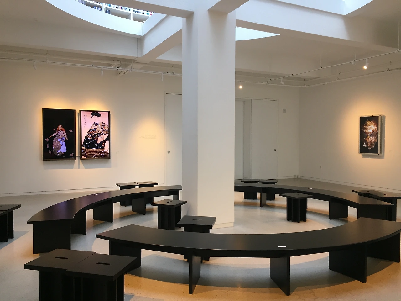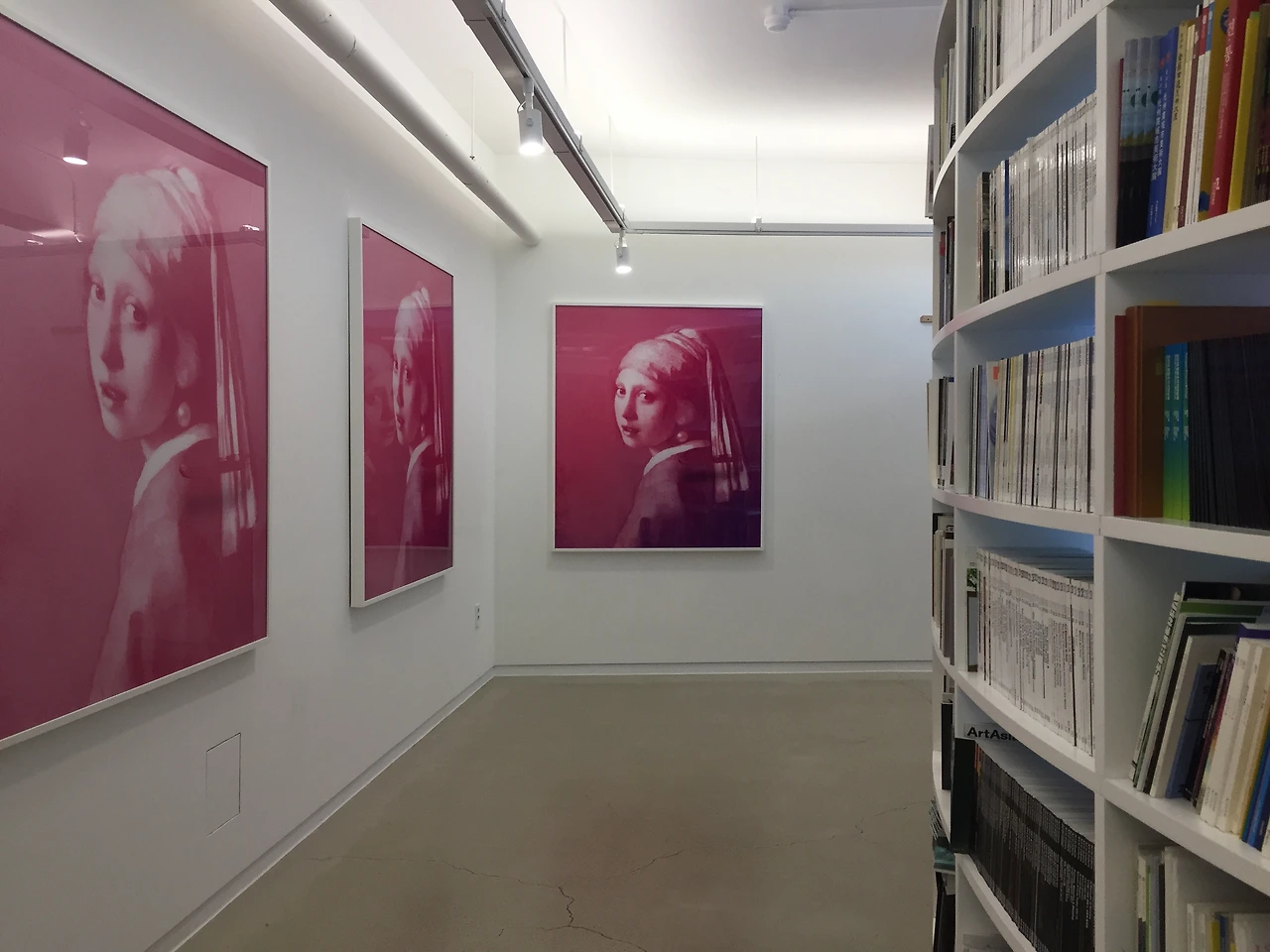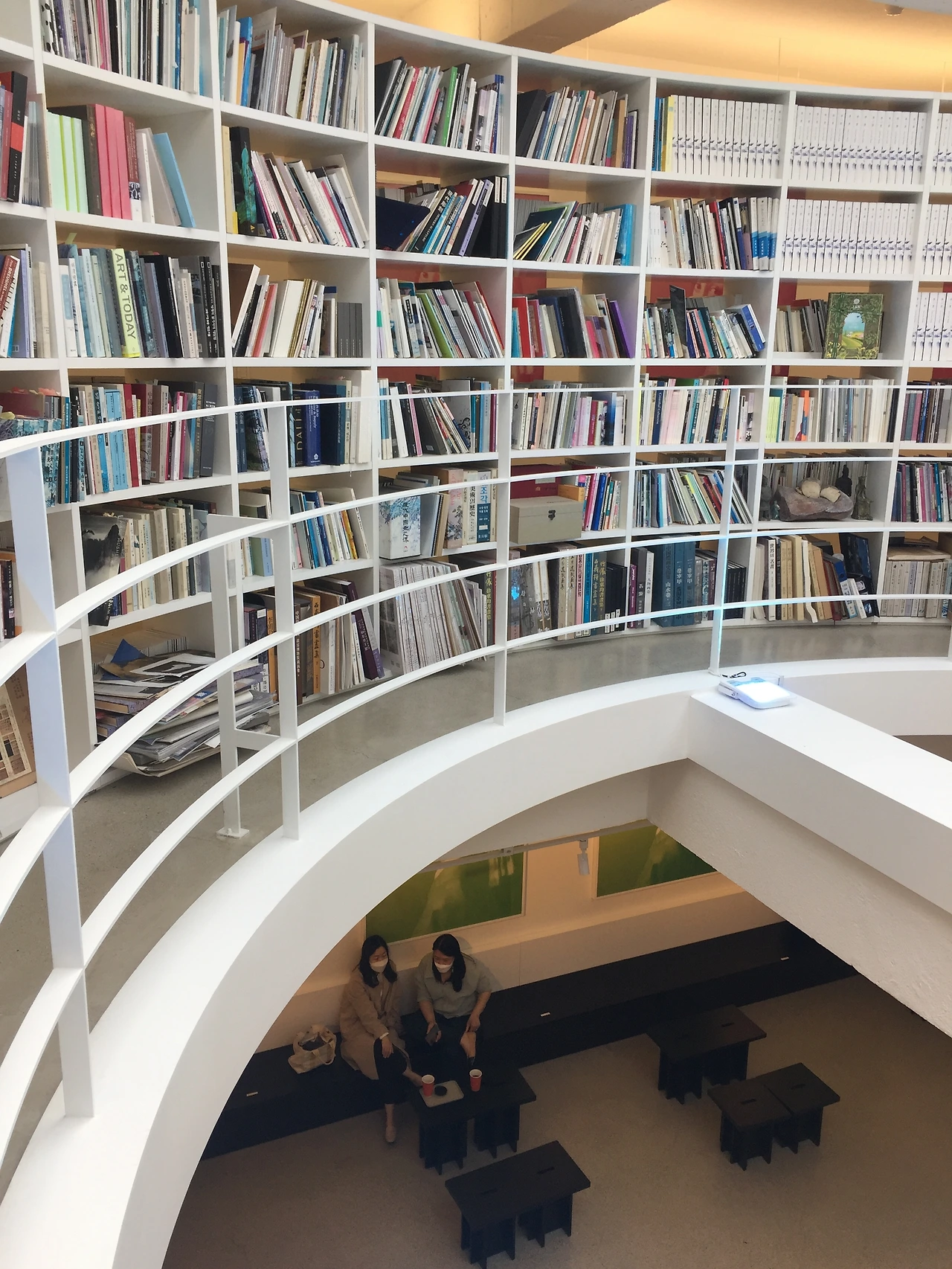 다른 하나의 숨통은 전시 공간이 위치한 건물 중앙에 뚫었다. 전시구역의 중앙에 원통형 공간인 로툰다를 배치해 실내에서도 외부환경을 느낄 수 있도록 만들었다. 공간을 왜 쓸데없이 낭비하느냐고 시공사에서도 반대했지만 작가가 원하는 대중과의 소통을 염두에 둔 디자인적 파격이었다. 고개를 들어보면 가운데 천창으로 하늘이 보이고 그 주변으로 원형으로 만들어진 서가가 보인다. 원형으로 만들어진 2층 서가는 학구열 높은 이이남 작가가 소장한 자료와 서적들로 채워져 있다. 그 뒤편에 작가의 작업실이 위치해 있다. 박 대표는 이이남 작가의 작업실 한쪽 벽에 큰 창을 내어 외부의 경치를 들여놓았다.