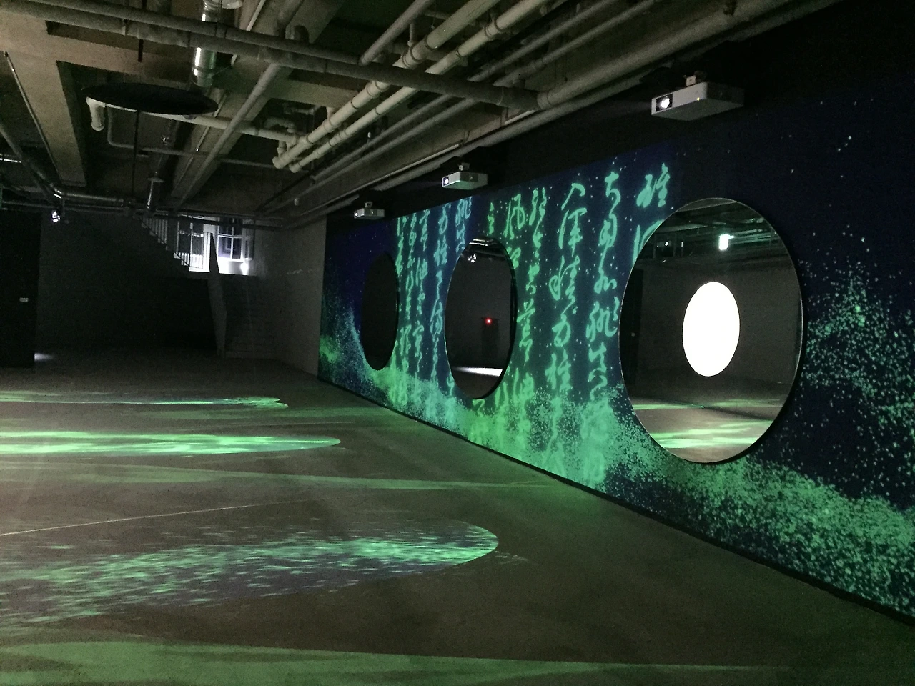 'DNA 산수'는 사공도 시품첩에서 '웅혼'과 충담', 왕희맹의 '천리 강산도'를 작가의 DNA 데이터와 그에 따른 빛 신호로 재해석함으로써 작가 자신과 산수가 하나 됨을 표현한다. 원형 거울과 영상이 서로 마주하며 배치된 공간에 관객이 직접 투영되도록 연출해 관객 또한 작품의 일부가 되도록 연출했다. 주체와 객채가 구분되지 않는다. '반전된 빛'은 마주할 수 없는 해와 달의 글자가 만나 밝을 '명'자를 만들었듯이 반전에서 공존의 의미를 찾는다.
