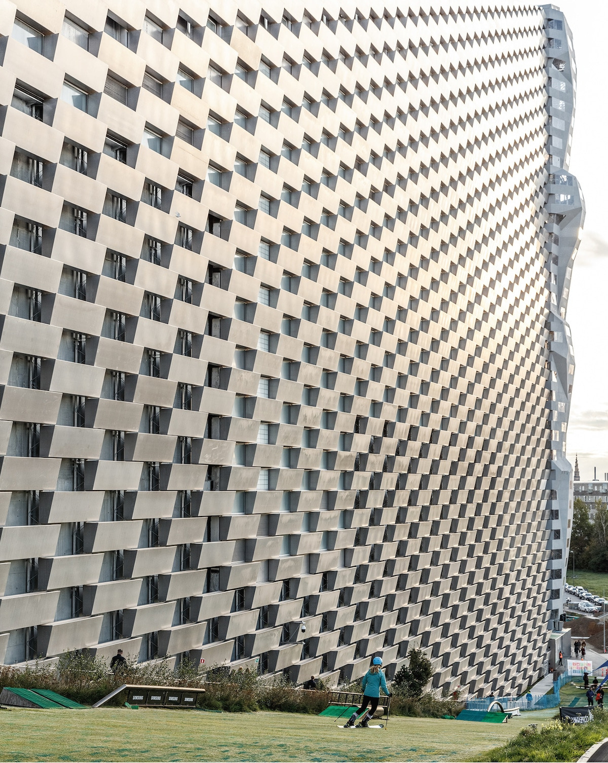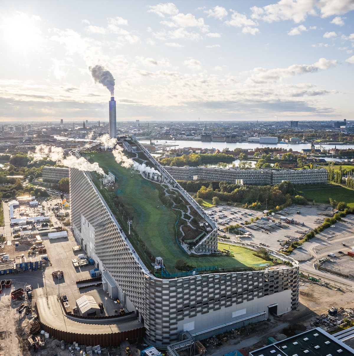 혁신적인 디자인으로 유명한 BIG(bjarke-ingels-group)에서 설계한 CopenHill은 코펜하겐의 폐기물-에너지 공장으로 10층 건물 외부에 인공 스키 슬로프를 설치했다. 행정 공간과 대형 교육 센터를 포함하는 이 공간은 조명 유리 패널을 둘러싸고 알루미늄 벽돌로 덮여 있다.