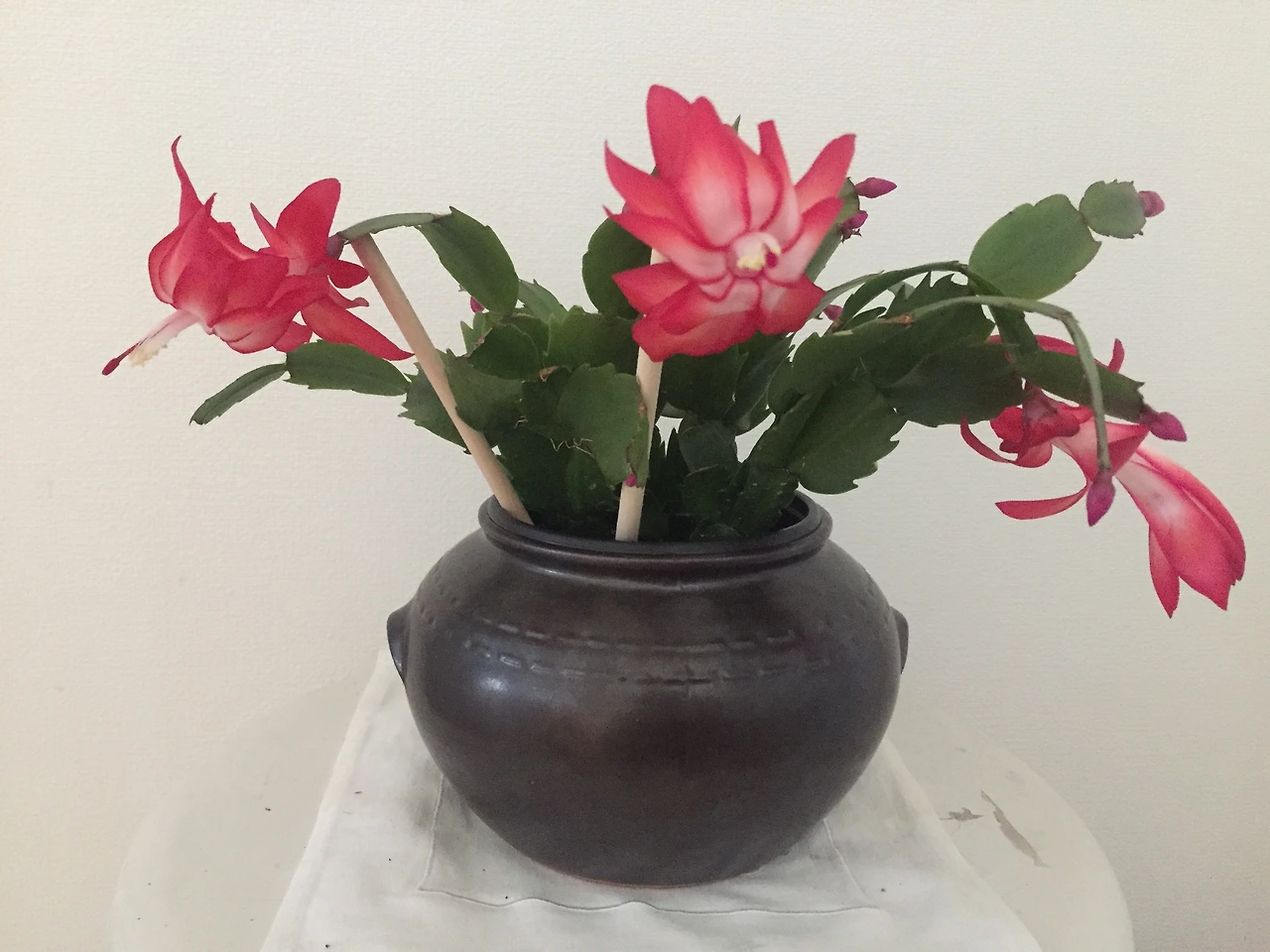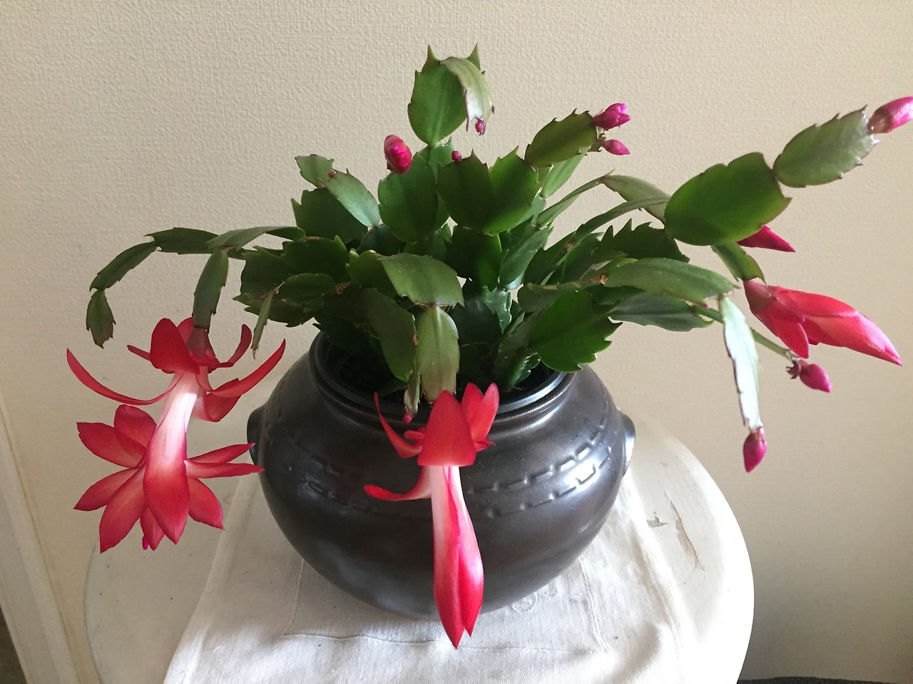 사진을 찍어서 친구에게 꽃 이름을 물어보니 '게발선인장'이라고 한다. Zygocactus truncatus 가 이 꽃의 학명이다. 잎이 게발처럼 생겨서 붙은 이름인 것 같다. 브라질 리우 데 자네이로가 원산지인데 12월에 꽃이 피기 때문에 크리스마스 선인장이라고도 한다.