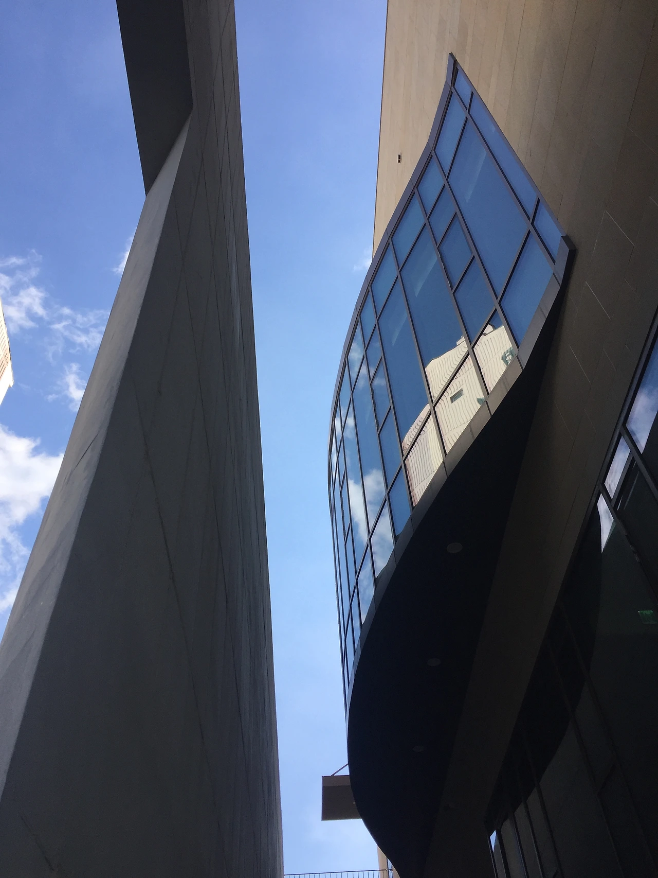기존에 자리한 붉은색 벽돌 건물을 철거하고 신축하는 프로젝트는 현상설계로 진행됐다. 이 교수는 즐비한 상가 건물들에 꽉 막힌 성채처럼 여겨졌던 붉은 벽돌의 교회당 건물 대신 들어서는 신축 교회는 도시의 가로가 교회를 통해서 막히지 않고 반대편으로 소통하도록 디자인했다. 주차장 입구에서 보면 확연히 드러나는 ‘V’ 자형 기둥이 건물을 떠받치고 있는 모습이 특이하다. 이 교수는 “넓지 않은 부지에서 주차장으로 진입이 용이하도록 지상 볼륨을 들어 올릴 때 캔틸레버(건물 본체에서 튀어나온 부분)의 지지를 돕는 구조적 해결책일 뿐 아니라 들린 볼륨 아래로 열린 가치가 유입되는 건축 특성을 드러내는 상징”이라고 설명했다.