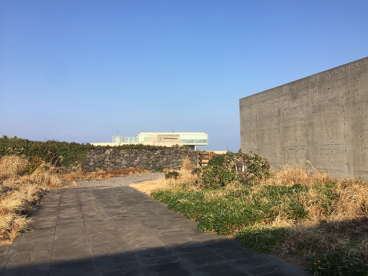 양 옆에서 경사진 벽을 따라 좌우에서 쏟아지는 물소리는 바람소리와 한데 뒤섞여 방문객의 발길을 재촉한다. 물을 지나 직선방향으로 입구가 보이고, 그 뒤로 가로 방향의 개구부가 보인다. 호기심을 불러일으키는 디자인이다. 발걸음을 옮겨 안으로 들어가니 앞에 놓인 돌담에 가로 방향의 구멍이 나 있다. 가로로 열린 개구부를 통해 저 멀리 성산 일출봉이 보인다. 그곳에 있는 실물이지만 비현실적인 것처럼 보인다.