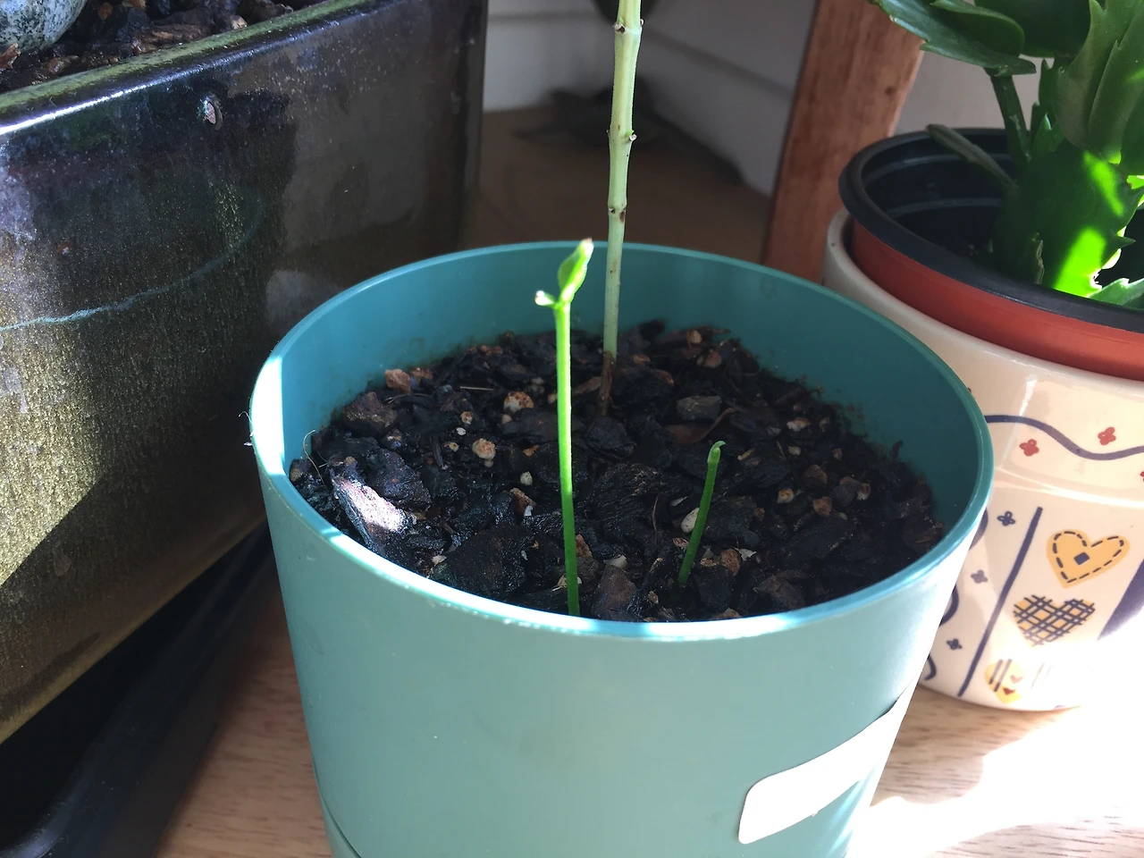 그리고 잊고 지낸 지 수일 뒤! 가만히 보니 고개를 쑥 내미는 작은 싹이 보였다. 그것도 2개나!!