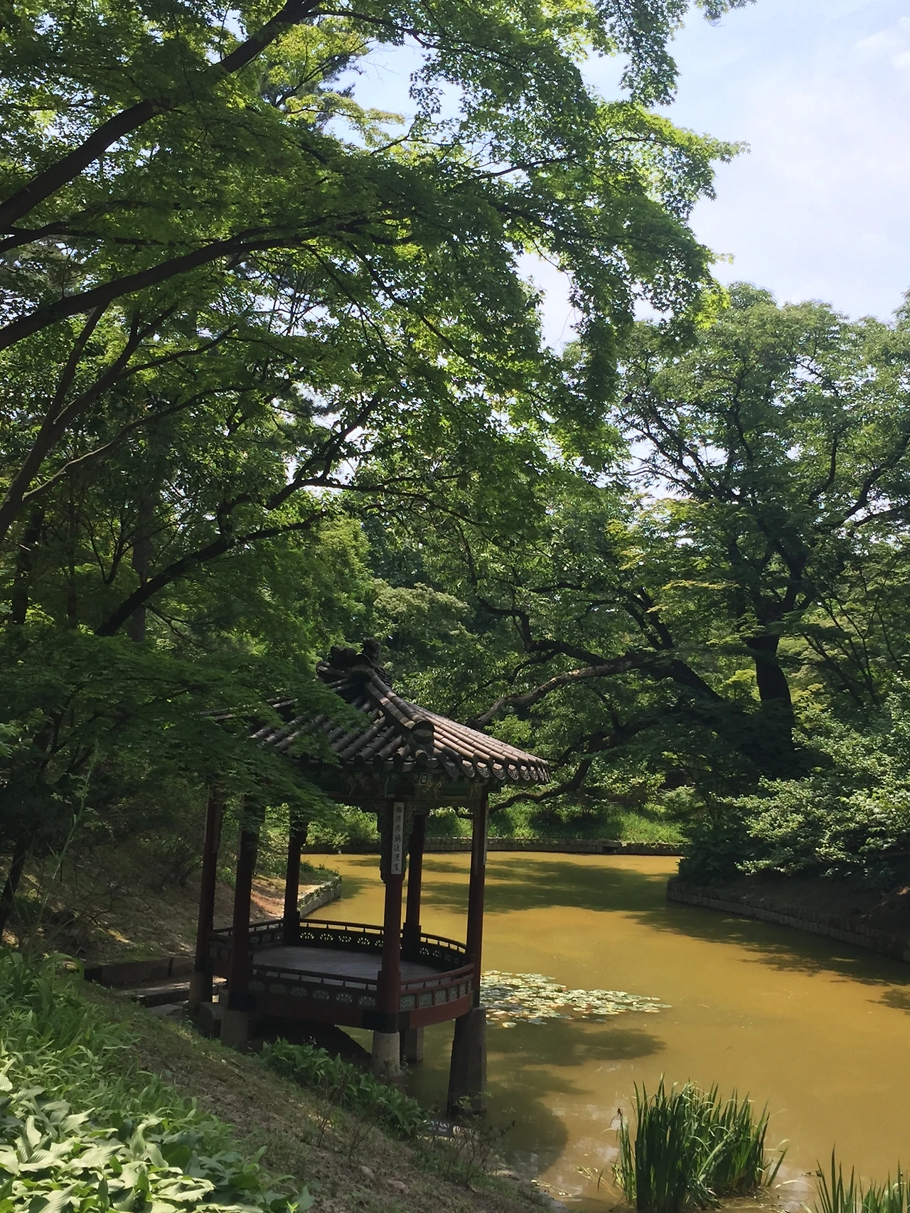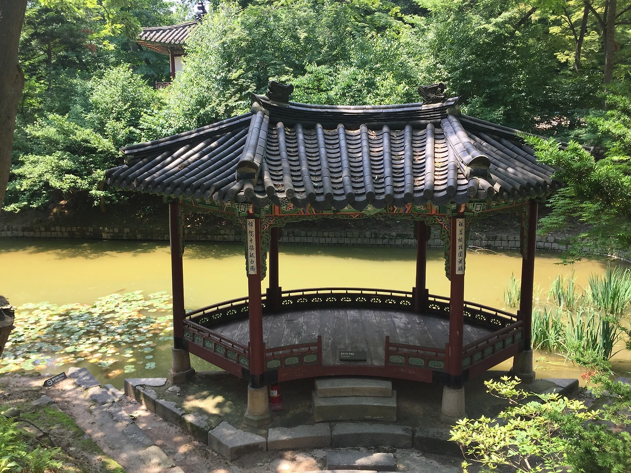 한국 조경문화의 정수, 궁궐 조경 중에서 가장 빼어난 창덕궁 후원은 역시 대단하다. 수백 년 된 나무들이 우거져 그늘을 만들어 주긴 했지만 정말 더웠다. 모자 쓰고 , 양산 쓰고, 부채를 부치면서 손풍기로 얼굴의 열을 식히며 열심히 설명해 주는 가이드를 따라 걸었다.