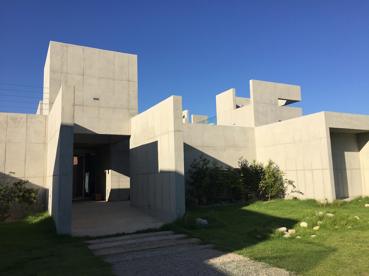 주변의 논보다 좀 높게 쌓은 야트막한 언덕배기에 노출 콘크리트로 된 사각기둥 더미들이 부락을 이루듯 모여있는 ‘논 스페이스’를 공중에서 보면 우물 ‘정’(井) 자를 여러 개 겹쳐 놓은 바둑판 모양이다. 논 한가운데에 노출 콘크리트 건물이라 이질적일 것 같지만 묘하게도 주변 풍경과 잘 어우러진다. 3년 전 이 프로젝트를 시작하면서 이곳의 예전 모습이 궁금해 1970~80년대 위성지도부터 구해 봤다는 정 소장은 “논길의 수로처럼 여러 개의 벽을 격자형으로 세워 중첩된 공간에 가로와 세로의 질서를 부여하며 논의 기억을 되살렸다”고 설명했다.