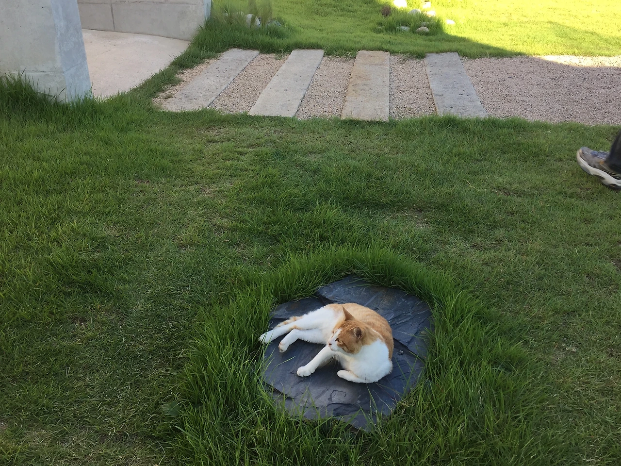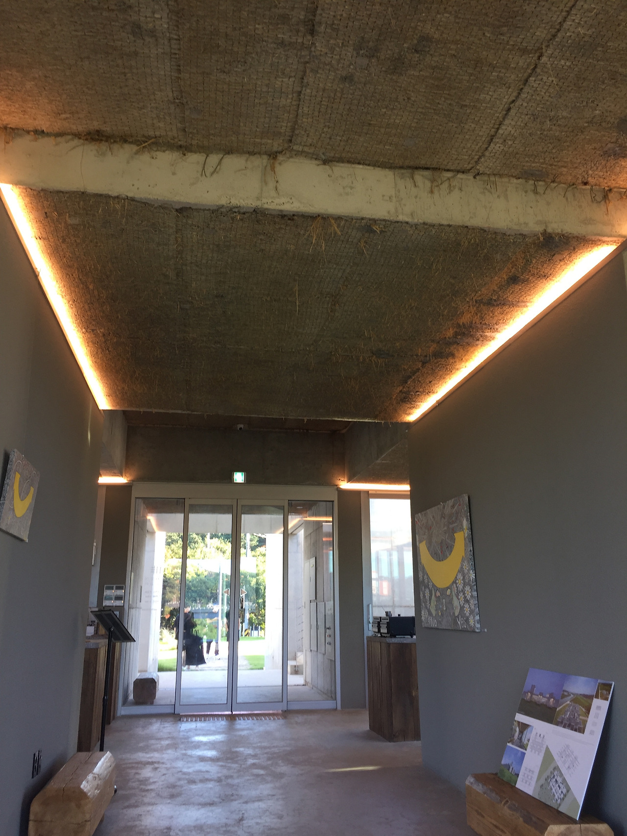 “어릴 적에 모내기를 한 뒤 쌓아 놓은 볏단에서 놀던 추억이 있어요. 이 공간에서 그런 느낌을 주기 위해 벽은 시골 논바닥처럼 거칠고 투박한 느낌을 주었고, 천장에는 수작업으로 만든 중국산 멍석을 이용해 콘크리트를 타설 했습니다. 시간이 지나면서 볏짚이 변형되고 물성도 바뀌어 내부 공간에서 느끼는 감성이 달라질 것입니다.”
