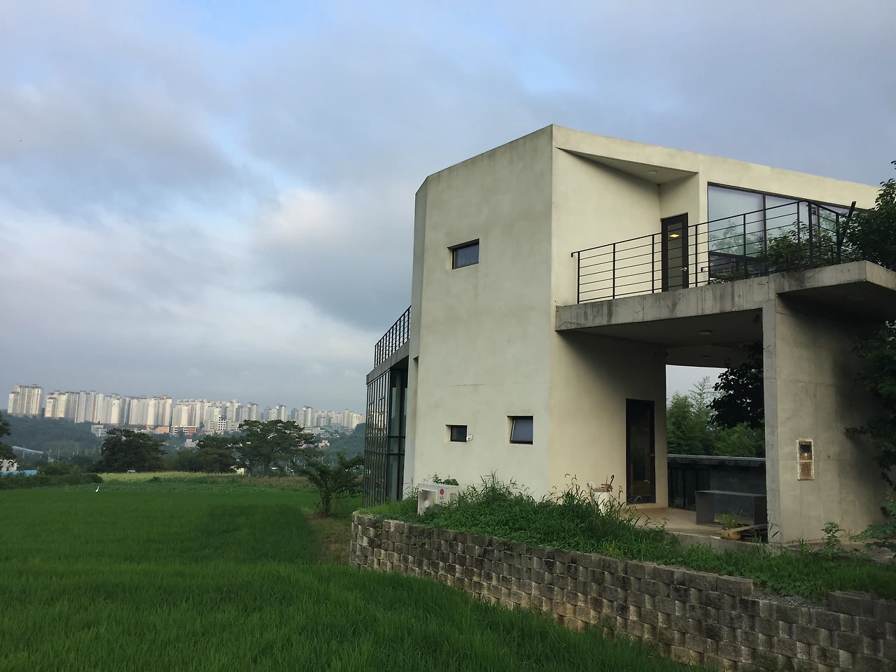 논뷰! 논이 바라다 보이는 전원에서 누릴 수 있는 편안함이 있다. 공간 자체가 사방으로 오픈되어 있으면서도 내부는 개별공간처럼 블록화 되어 있어 대면 접촉을 최소화해야 하는 코로나 시대에 절묘하게 맞아떨어진다. 어디서든 통창을 통해 느긋하게 시간을 보내며 자연 속에서 슬로우 라이프를 경험할 수 있는 곳이다.