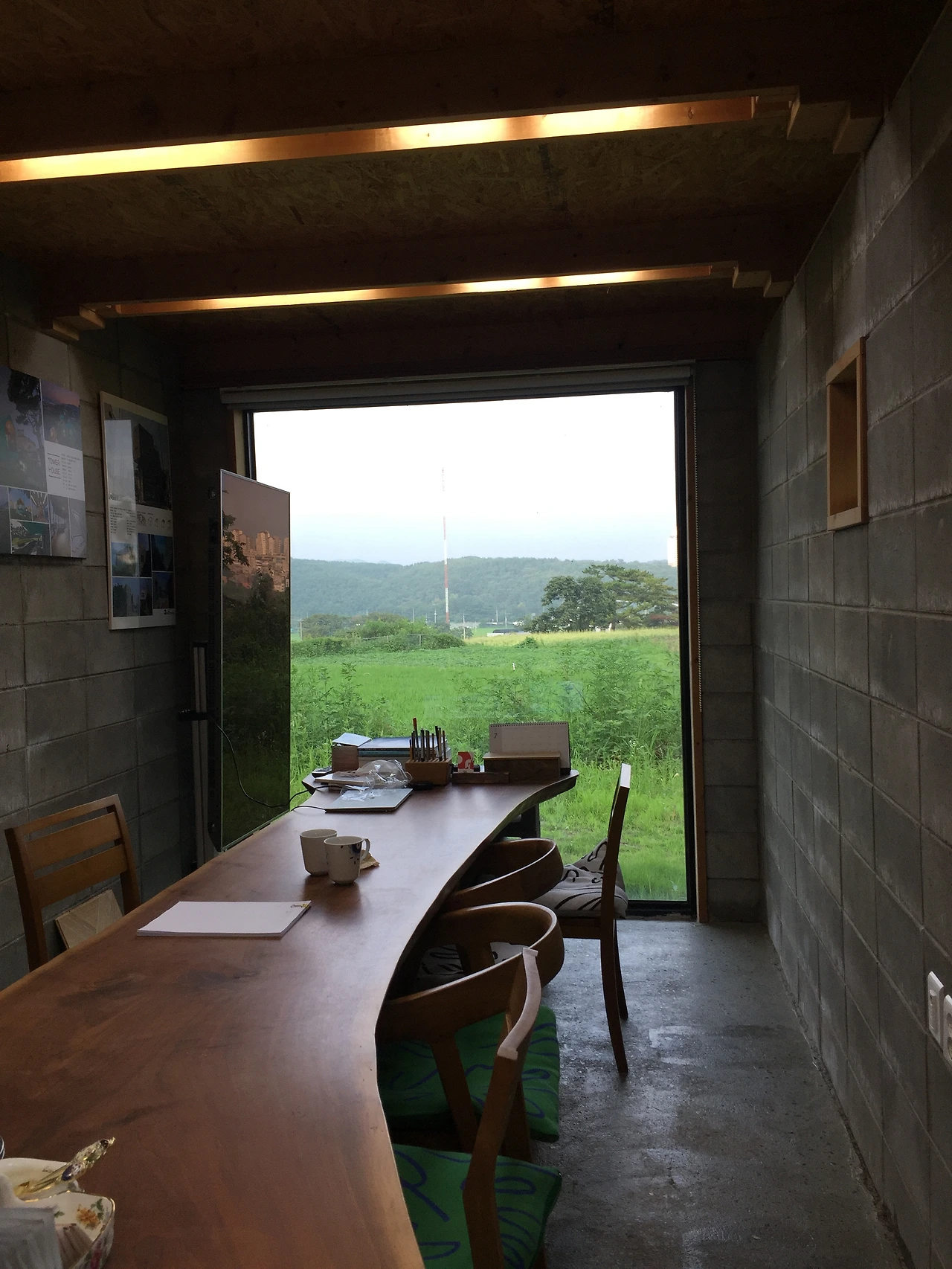 지난 번 울산에 취재가는 길에 건축가 정웅식의 건축설계 사무소를 잠시 방문했다. 그는 번잡한 울산 도심을 벗어나 논과 밭으로 둘러싸인 자연 속에서 자연의 변화를 느끼며 작업한다. 논스페이스 공간은 이런 환경에서 작업하기에 더 자연스럽게 나왔으리라..