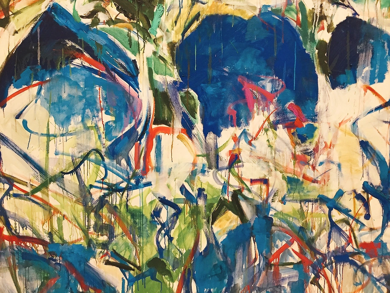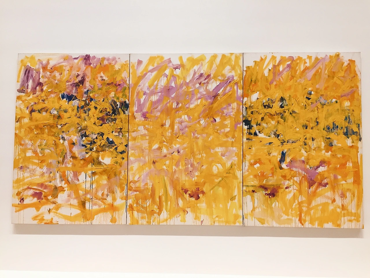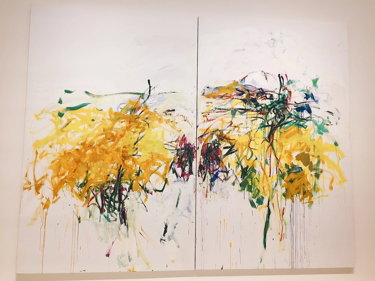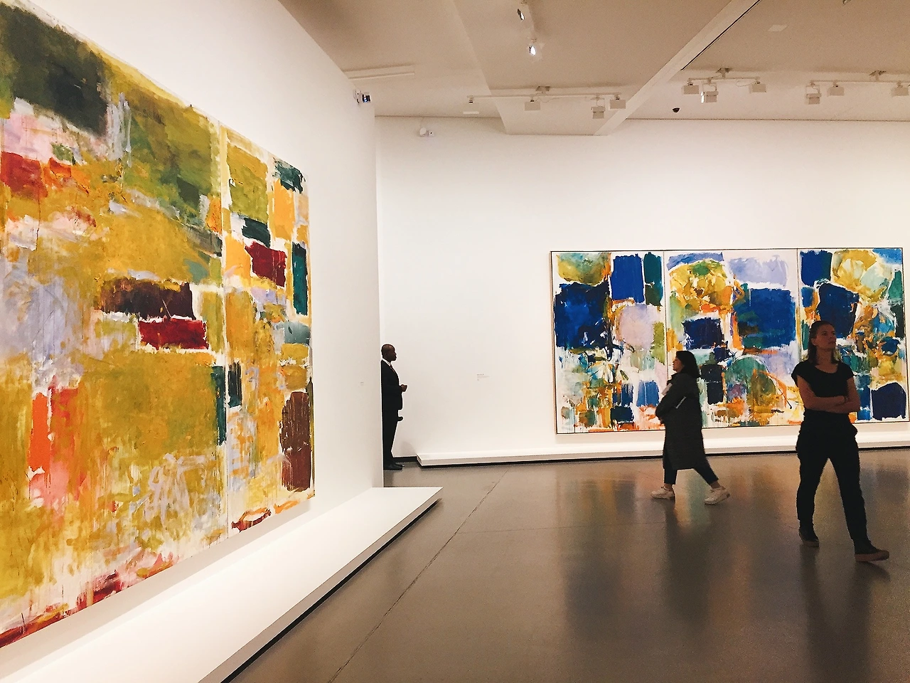 아무튼 입장해서 바로 지하 전시장으로 향했다. 와! 탄성이 절로 나온다. 추상 표현주의 화가 미첼이 대형 캔버스에 컬러와 붓 질로 그려 낸 폭발적인 에너지가 공간을 가득 채우고 있었다.