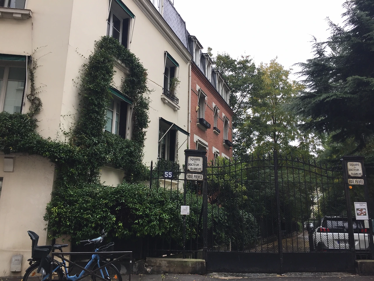 파리 16구는 파리에서도 중상류층이 사는 동네다. 아파트 건물도 고급진 것들이 많은데 길에서 보면 별로 드러나지 않지만 큰 문을 열고 들어가면 안 뜰(정원)을 예쁘게 가꿔 놓고 있다. 정원을 외부와 차단시키고 그곳에 사는 사람들만 즐기도록 한 파리의 고급 아파트와 달리 메종 라로슈는 ‘독퇴르블랑슈 스퀘어’라고 쓰인 문을 들어서서 안으로 길게 난 진입로를 따라 들어가야 한다. 진입로 안 쪽에 건물을 배치한 점이 특이하다. 거주자의 시선이 밖으로 향하게 하는 역할도 할 것이다. 설계 당시 지형의 입지가 까다로워 그렇게 했다는 설도 있지만 혈기 왕성한 청년 르 코르뷔지에는 파리 주택의 폐쇄성을 비판했었다.