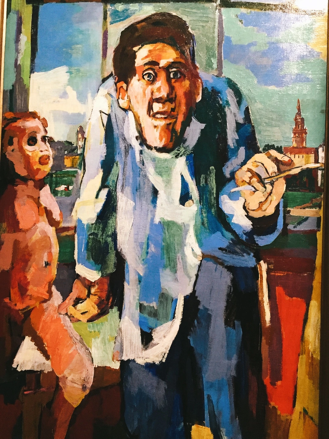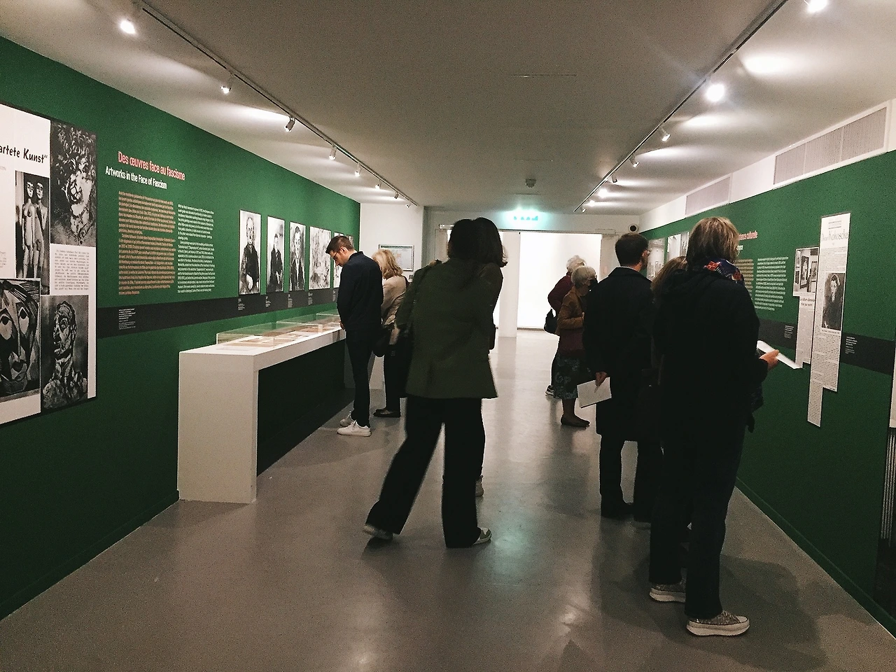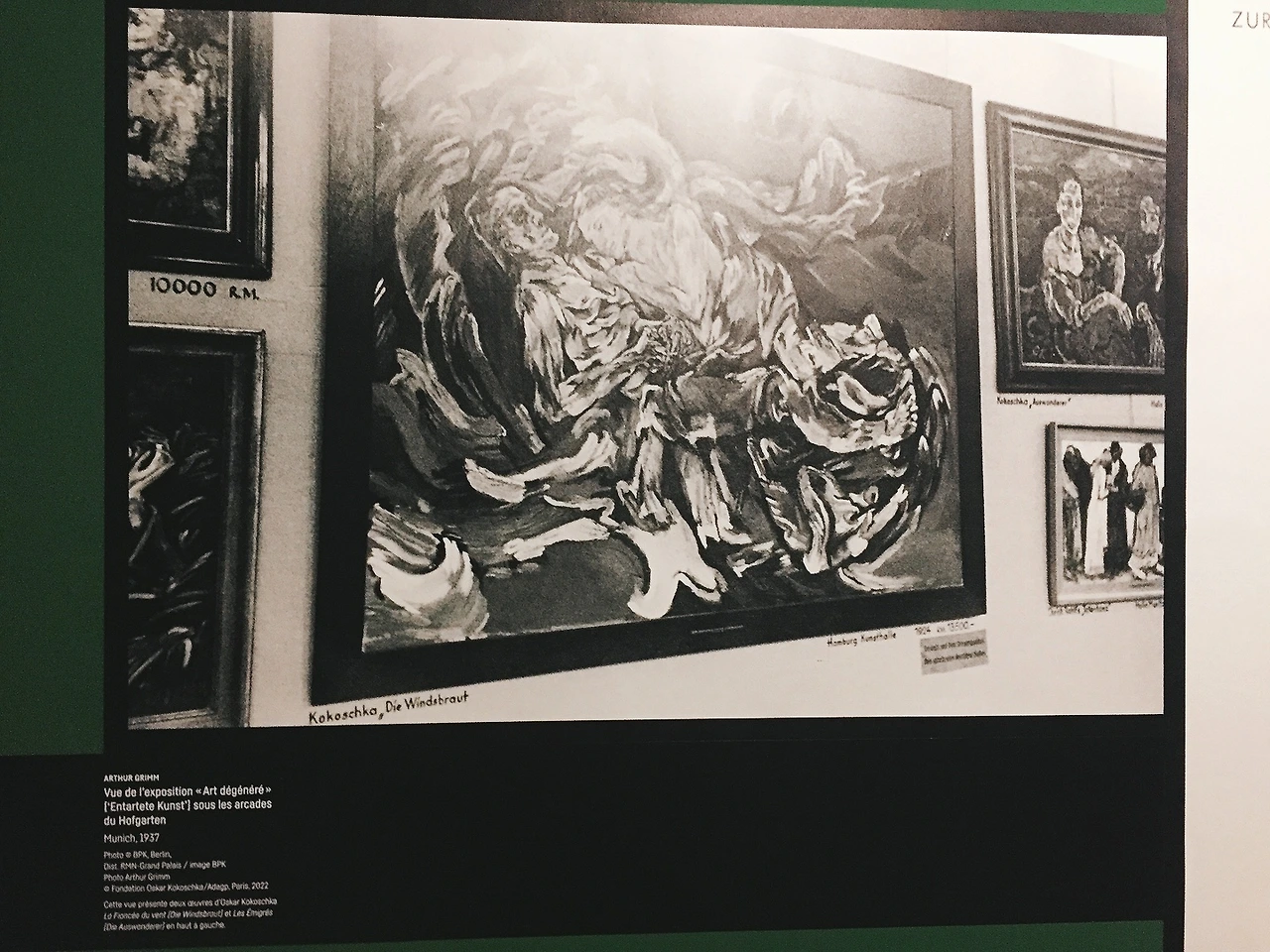 코코슈카의 작품은 너무나 직설적으로 내면을 드러내기 때문에 나치 독일이 퇴폐화가로 가장 먼저 낙인이 찍혀 작품 활동을 제한당했다. 1932년엔 그가 작업한 그림 중 5점이 드레스덴 박물관에서 압수당하고 히틀러 집권 후엔 그의 작품은 모든 공공 미술관에서 철거되어 공매되는 운명에 처했다. 작품활동을 할 수 없는 지경이 되자 그는 프라하를 거쳐 런던으로 피신했고 그곳에서 예술적 저항운동을 본격화했다. 비슷한 처지의 아티스트들을 규합해 ‘자유 예술가 동맹'을 결성해 나치에 저항하는 한편 ‘퇴폐 예술가로서의 자화상' 등 작품을 남겼다.