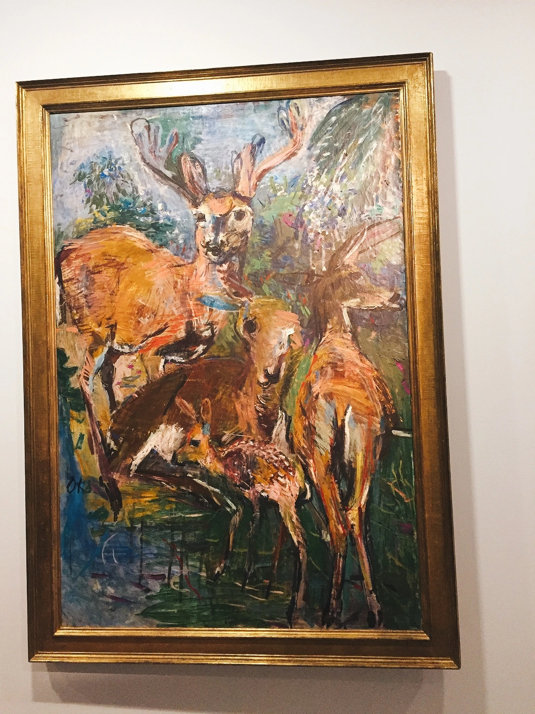 파란만장한 시기를 넘긴 오스카 코코슈카는 1953년 스위스 국적을 얻어 스위스 레만호 부근 빌뇌브에 안착한 뒤 평화로운 풍경을 그리며 젊은 이들에게 예술작업을 가르치기도 했다. 전시장에선 노년에 이른 그의 인터뷰 영상과 스위스에서 화가 지망생들을 지도하는 장면 등을 볼 수 있었는데 우직한 인상에 낮은 목소리가 프랑스 고전 영화배우 장 가뱅을 연상하게 했다.