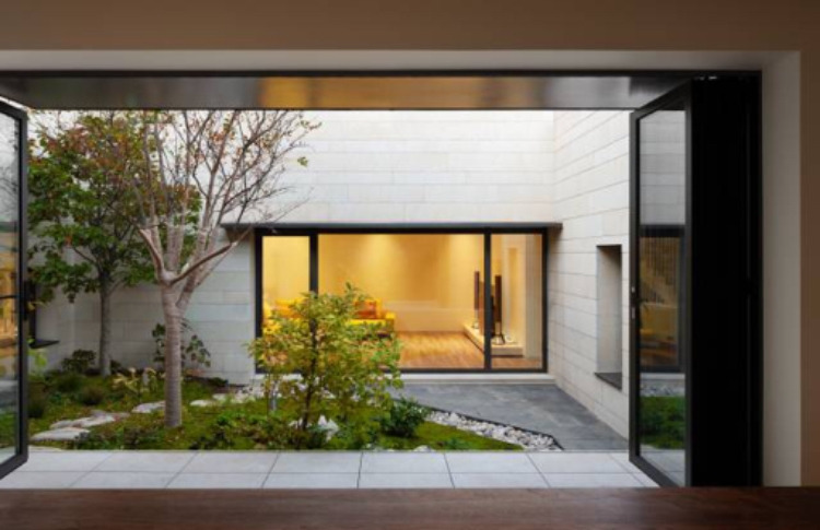 “중정에 나무들이 자리를 잡으면 집안에 녹음이 드리울 것입니다. 사계절이 담기는 모습은 살아있는 액자가 될 거예요. 1층의 소정원은 빛 우물 역할과 따뜻한 감성을 부여해 줄 것입니다. 집안에 들어서는 가족들에게 어서 오라고 인사를 건네듯이 말이죠. 소정원들은 채광, 녹음, 통풍의 역할 외에 공간의 중첩으로 수채화의 겹칠과 같이 두 공간이 겹쳐 보이는 효과를 낼 것이고요.”