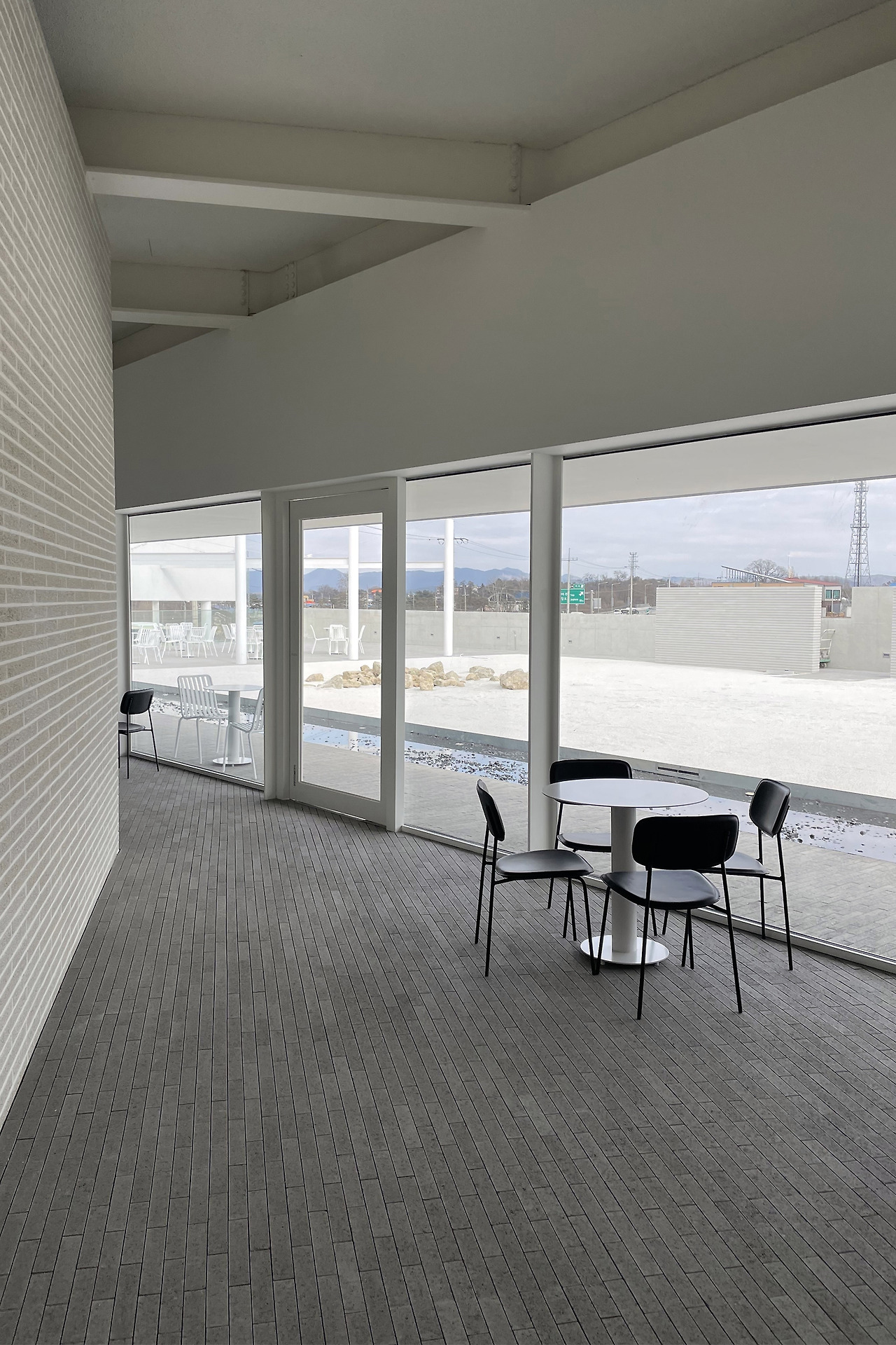 고속도로변이라 진입도 불편하고 주변에는 기능에 충실하게 지어진 무뚝뚝한 물류창고뿐이다. 길도 잘 닦이지 않아 울툴불퉁하며, 건초 덤불이 있는 노지에 옆으로는 자동차가 쌩쌩 지나가는 데다 부지는 꼬리가 달린 삼각형 모양이었다. 꼬리 부분에 건축주의 주택을, 삼각형 땅에는 카페를 짓고 싶다는 건축주도 ‘이런 땅에 지어도 되는지’ 의구심을 표할 정도로 부지의 조건은 좋지 않았다.