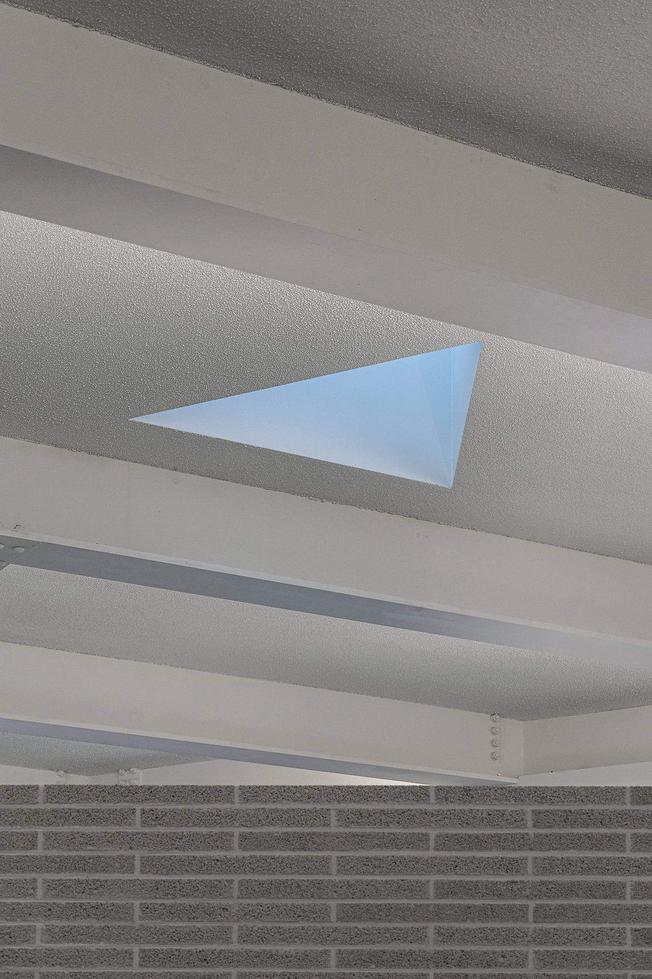 민 소장은 “시간의 변화에 따라 빛의 밝기와 선의 굵기가 달라지게 만들었는데 오랫동안 머물면서 그런 것을 감지할 사람들은 없고, 짧은 시간 동안 머물면서 사진을 찍는데 집중하다 떠난다”고 아쉬움을 표했다. 빛의 복도 말고도 카페를 찾는 사람들이 잘 알아채지 못하지만 내부 공간을 들여다보면 많은 디테일들이 숨어있다. 단순한 삼각형의 내부에 화장실의 모양은 사각형으로 만들었다. 그것도 약간 비뚤어진 사각형이다. 민 소장은 '화장실에 들어가서 하늘을 한번 꼭 보세요.'라고 했다. 파란 하늘이 담긴 삼각형 천창이 보인다. 삼각형 건물의 정체성을 화장실 천장에 그려 놓은 셈이다.
