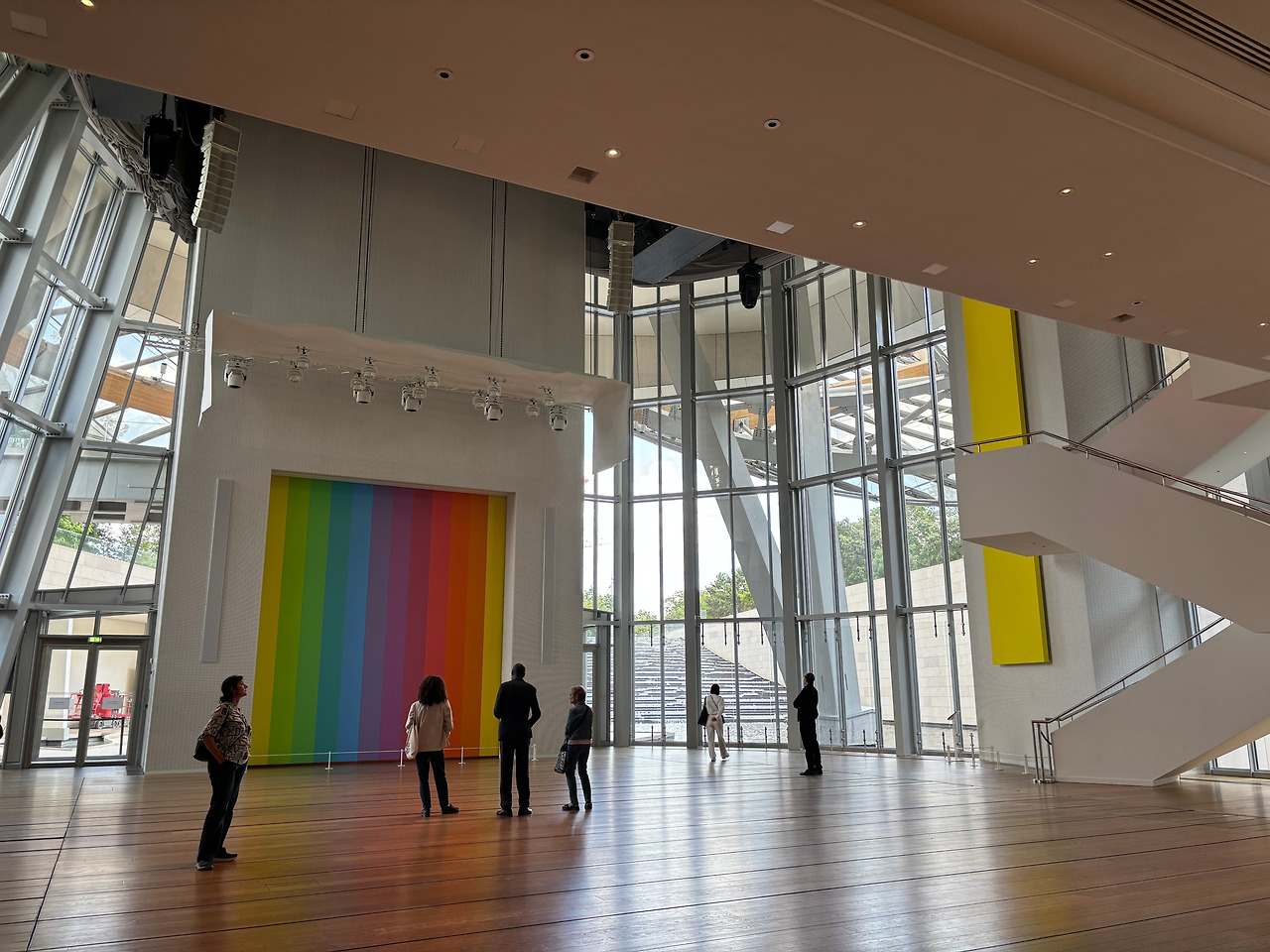켈리가 생전에 가장 마지막으로 제작한 장소특정적 벽화 작품은 루이뷔통 재단의 강당(오디토리움)을 장식하기 위해 2014년 커미션 한 기념비적인 작품 ‘스펙트럼 Ⅷ’이다. ‘스펙트럼 Ⅷ’은 강당의 층고와 같은 길이로 된 세로 패널 12개를 연결한 것으로 노랑부터 시작해 연두 초록 파랑 보라 빨강 오렌지에서 다시 노랑으로 끝난다. 오디토리엄의 벽에는 ‘색 패널(Colored Panels) 빨강 노랑 파랑 초록 보라’가 함께 설치돼 ‘스펙트럼 Ⅷ’과 대화를 나누는 듯하다.