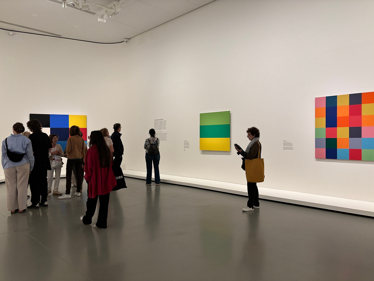 켈리의 원색에 가까운 산뜻하고 강렬한 색채 패널들이 프랭크 게리가 디자인한 오브제와 같은 건물의 흰색 벽과 어우러진 모습은 거대한 색종이를 무심하게 오려내어 벽에 붙여 놓은 것 같아서 관람객에게 새로운 공간적 경험을 선사한다. 전시를 보는 내내 색채의 놀이터에 들어가 있는 느낌이었다. 전시는 9월 9일까지 이어진다.