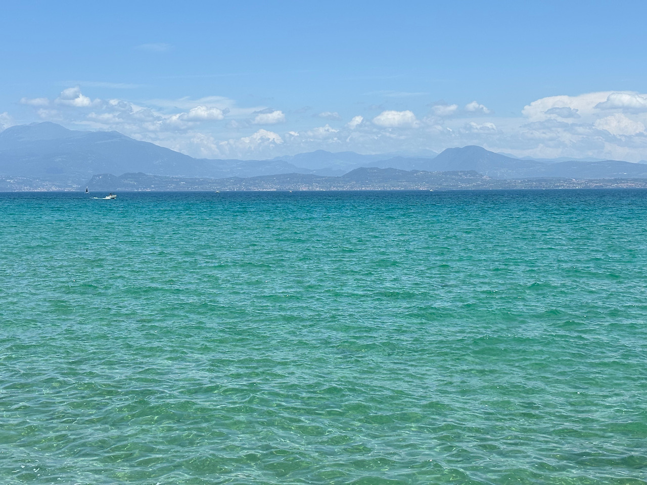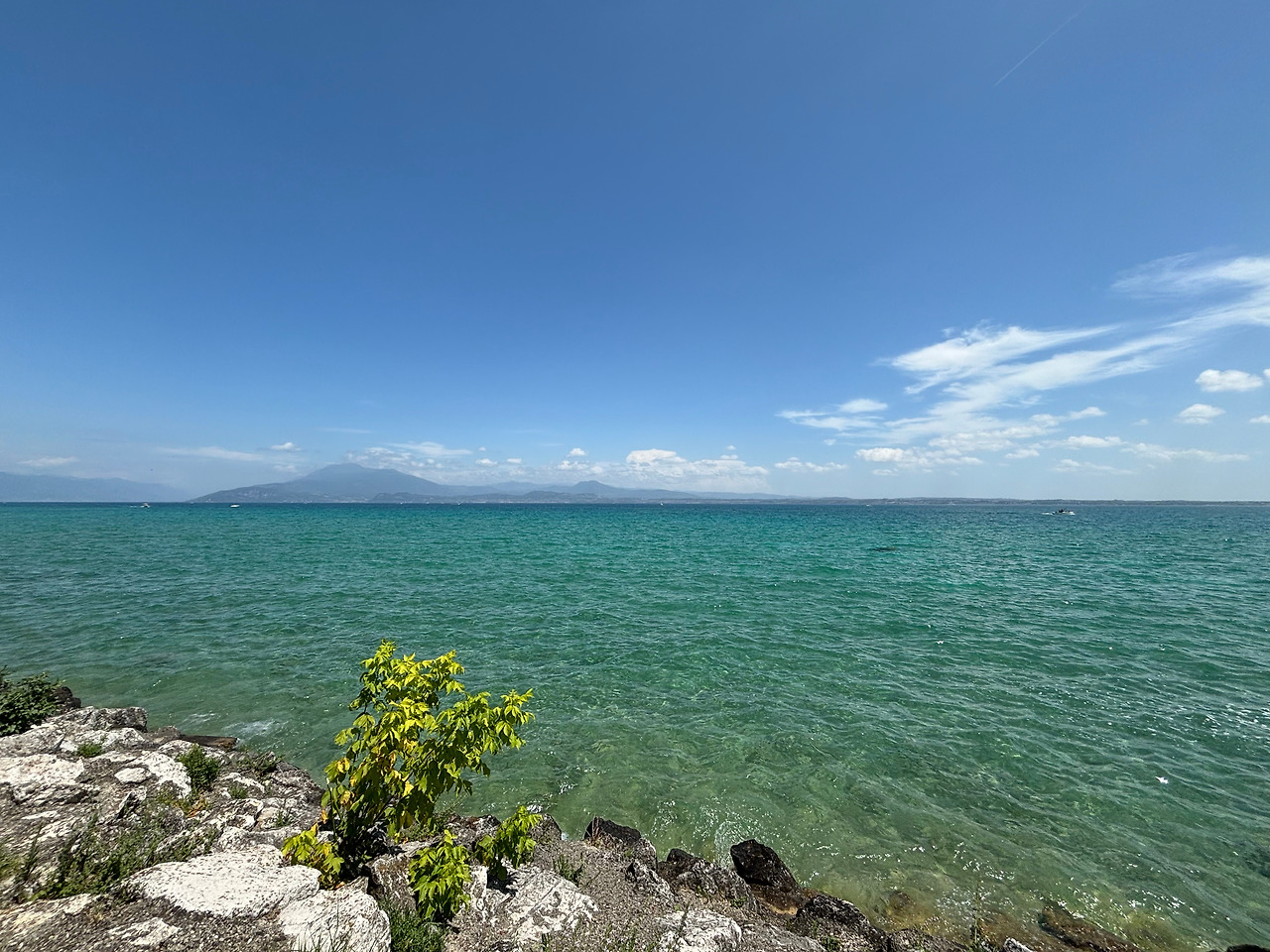 하룻밤을 편하게 쉬고 나서 밀라노를 향해 출발했다. 자동차로 4시간 가까이 걸리는 길이다. 중간에 가르다호수의 시르미오네를 들러 보기로 했다. 가르다 호수는 총면적 370㎢, 최고 수심 346m의 이탈리아에서 가장 큰 가르다 호수 남쪽에서 충수처럼 삐죽하게 튀어나온 곳이 역사가 깊은 시르미오네이다. 아름다운 풍경과 온천이 있어서 로마시대부터 사랑받았고 많은 볼거리와 유명한 식당들이 있다. 날씨도 화창하고 일요일이어서 너무 많은 인파가 몰리자 경찰이 나와서 차량을 통제하고 있었다. 골목에 주차를 해 놓고 호숫가로 갔다. 빙하에 의해 형성된 호수의 에메랄드빛 물이 바다처럼 광활하게 펼쳐져 있다.