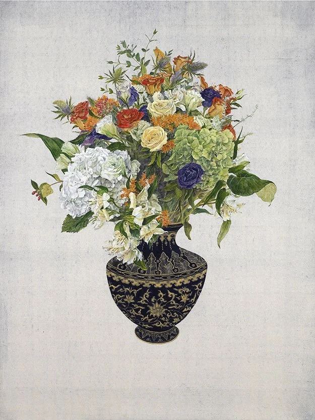반찬거리를 사는 길에 만나는 햇과일, 꽃시장에서 마주치는 제철 꽃들, 여러 빛깔 모양 화병, 많은 이들의 생각과 삶이 담긴 책들을 놓고 그 모양새를 찬찬히 좇으며 붓질을 쌓아나간다. 그의 작품은 부드럽고 소박하고 편안하다. 그러면서 그 속에 꽉 찬 충만감을 넘어서 단단한 힘이 느껴진다. 원하는 색의 묘사가 나올 때까지 끈기 있게 색과 선을 반복하며 무수히 쌓아 올린 노력과 시간의 결실이 드러나기 때문일 것이다.