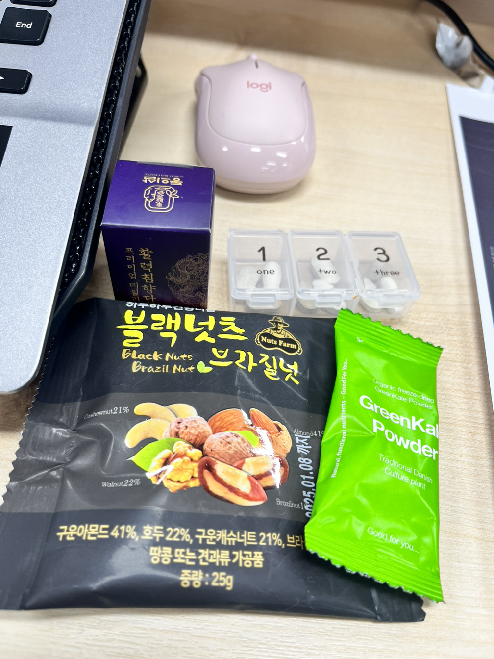 출근하자마자 영양제를 탈탈 털어먹는다.