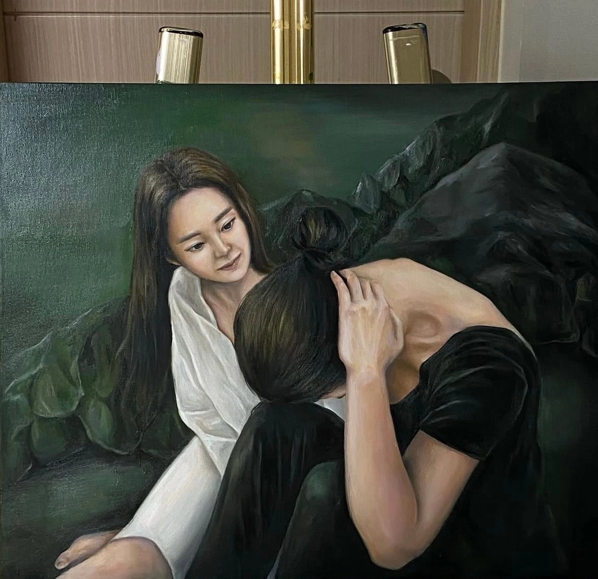 부드러운 살결을 표현하기 위해 정말 많은 시간을 들였다. 캔버스에 몸을 바짝 붙이고 붓을 조심스럽게 다뤄가며 덧칠을 거듭했다. 메이크업 아티스트가 된 것처럼 조금의 잡티도 허락하지 않았다. 물감은 컨실러가 되어 피부를 매끈하게 가다듬어나갔다.