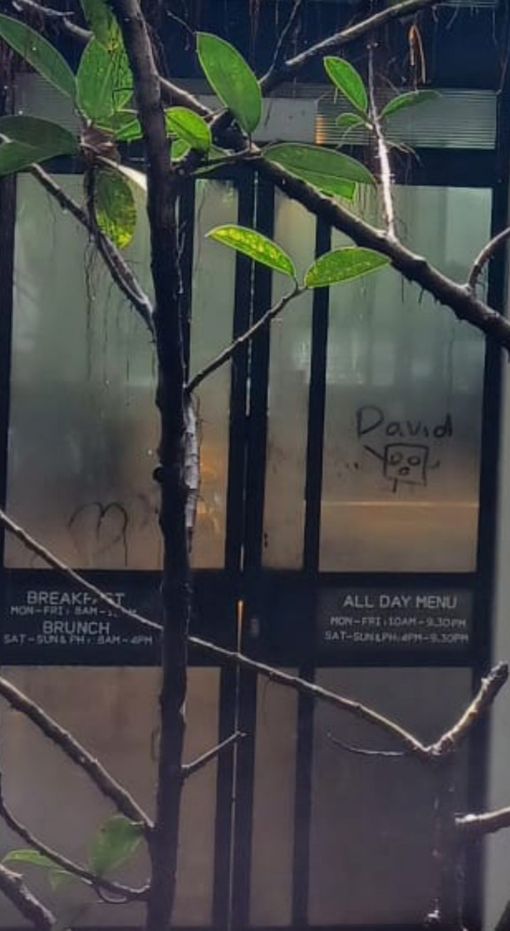 ㅎㅎ 들어가는 입구 유리문에 누군가 'David'이라고 써놨다.