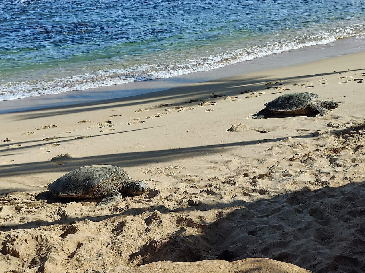 '히피타운'이라 불리는 Paia를 막 지났을 때 Yvonne이 "Honu(하와이어로 거북이) 보고 갈까?" 하며 아침에 거북이들이 나와서 쉬는 지점이라며 차를 세운다.
