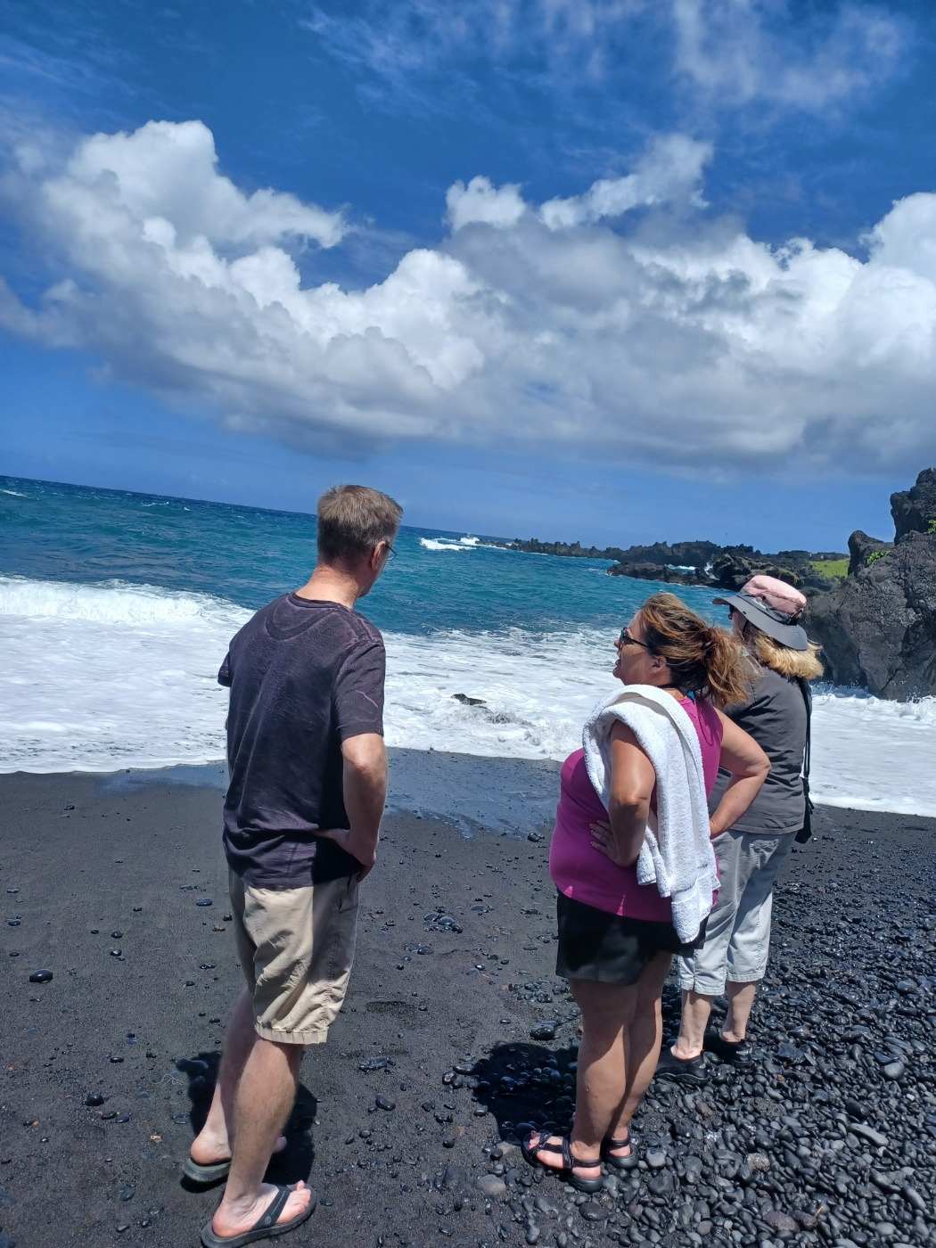 Hana에 도착하면 'Black Sand Beach'와 '폭포'에서 수영을 할 거라며 수영복과 타월도 챙기라는 직원의 말에 수영복,타월,여벌 옷까지 단단히 준비를 했다.