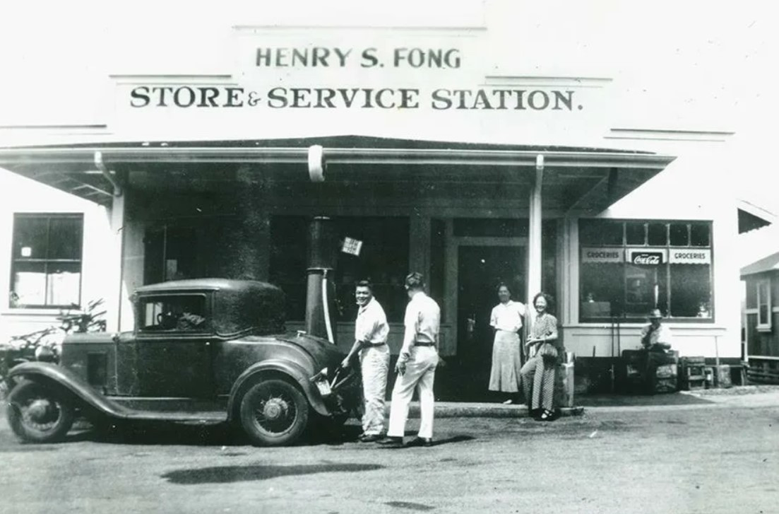 General Store(작은 마트)와 옛날식 가솔린펌프가 있는 주유소의 간판에는 Fong과 Ching이라는 중국인 '성(family name)'이 쓰여있다.