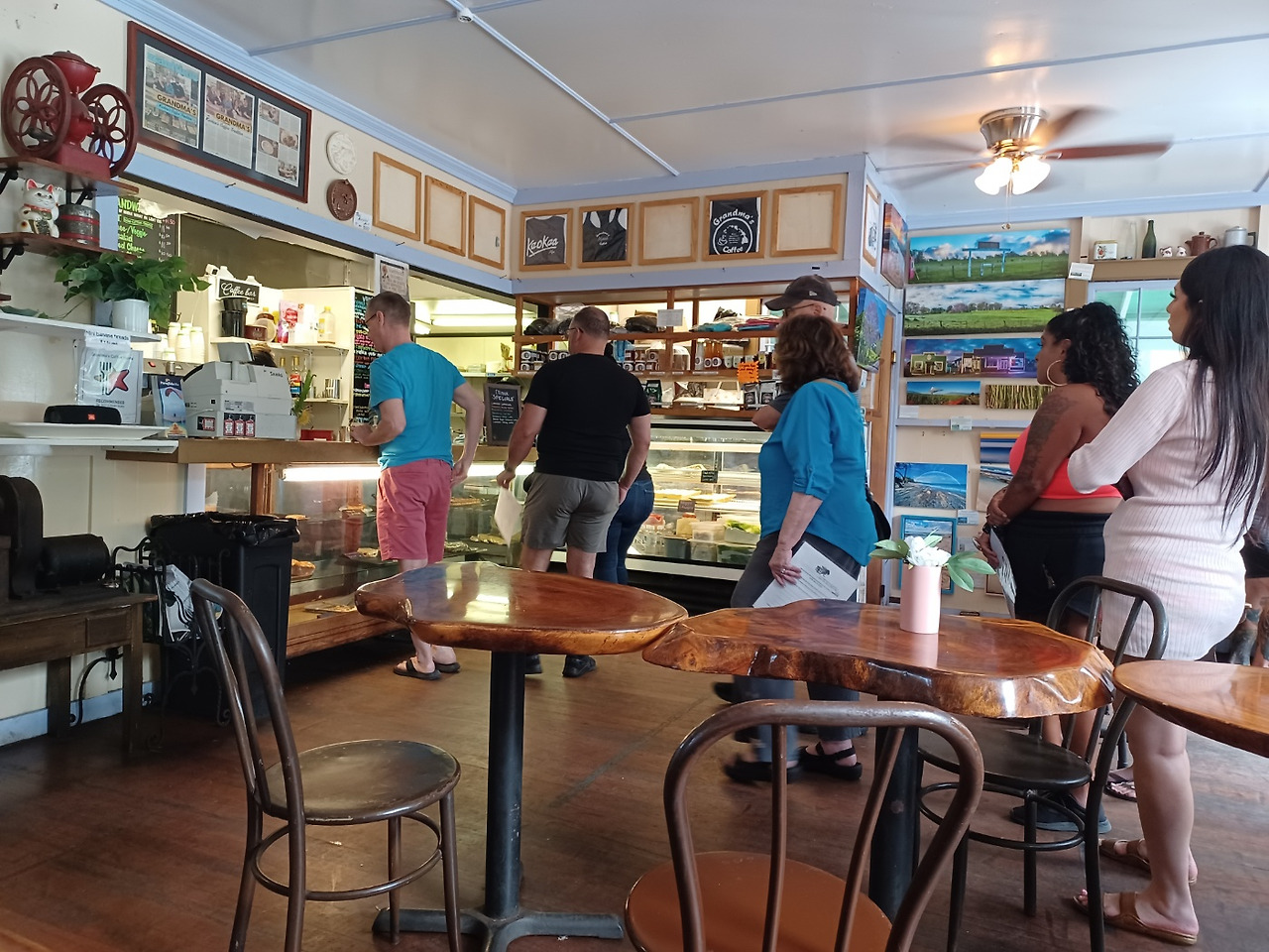 그래도 관광객과 현지인들에게 인기가 많은지 줄이 길어 한참 기다려야 했다. 동네 주민들의 작품인 듯한 그림과 악세사리도 팔고 있어서 다소 정신 없었지만 우리는 이해하지 못하는 하와이의 'Ohana (가족)'감성이 있는 곳이었다.