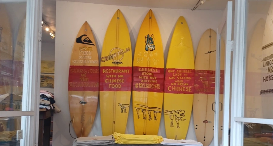 중국 이름에 'Established 1906'라 쓰인 것이 독특해서 인터넷으로 찾아보니 'Kula'는 화교 공동체가 조성된 지 100년이 넘었고 지금은 많이 줄었지만 한 때는 700명의 화교들이 살았다고 한다. 중국인들이 처음에는 사탕수수 농장의 노동자로 와서 공동체를 이루고 이 곳에 정착했다는 데 '쑨원(Sun Yat Sen)'과 그의 형도 이곳에서 거주했었다니 꽤 영향력 있는 화교집단이었던 것으로 보인다. 두 상점 사이의 갤러리는 '화교'의 애환을 표현한 것인지 중국인들을 비웃는 듯한 문구를 엉터리 영어로 쓴 작품을 전시하고 있었다. Grandma's Coffee House와 그 옆의 갤러리, 갤러리 옆의 Henry Fong 상점과, Henry Fong 상점 옆의 Ching 주유소까지 모두 Fong Family 소유라고 한다.