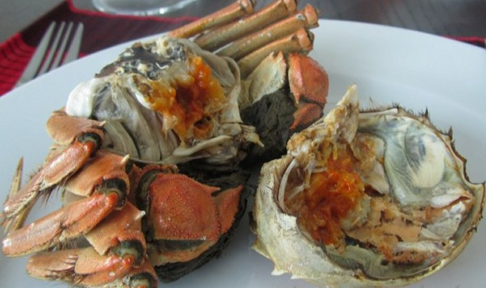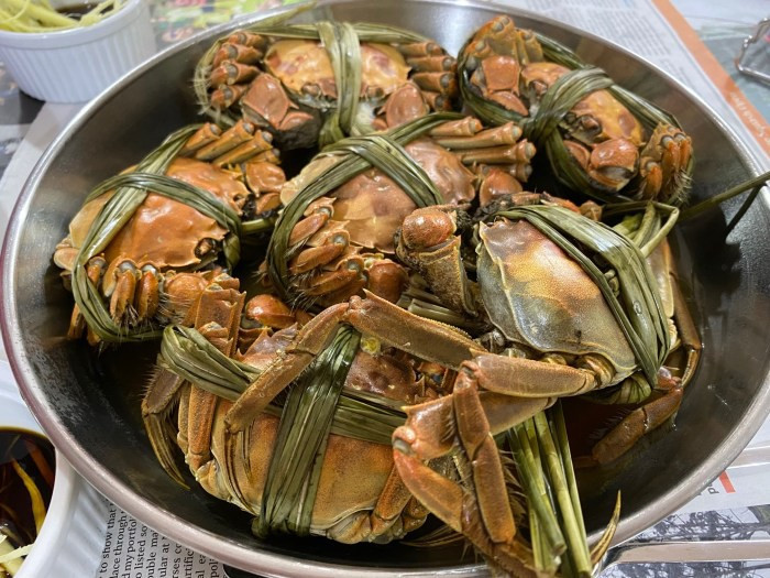 식탁 왼쪽에 앉은 사람들은 지푸라기에 묶여 살아있는 크랩을 찜통에 쪄서 만든 상하이 크랩을 생강을 넣은 식초에 찍어 먹었다. 크랩이 찬 음식이라 조화를 맞추기 위해 매실주를 따뜻하게 해서 함께 마시는 게 '제대로' 먹는 방법이지만 술을 안 마시는 나는 따뜻한 생강차와 함께 먹었다.