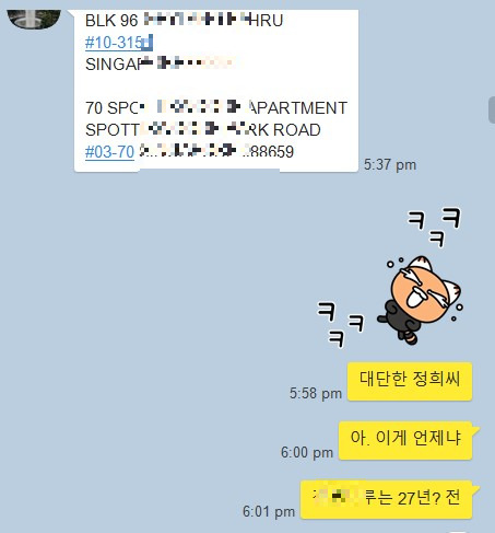 저녁에 정희에게 톡을 받고 기가 막혀 웃음이 터졌다.