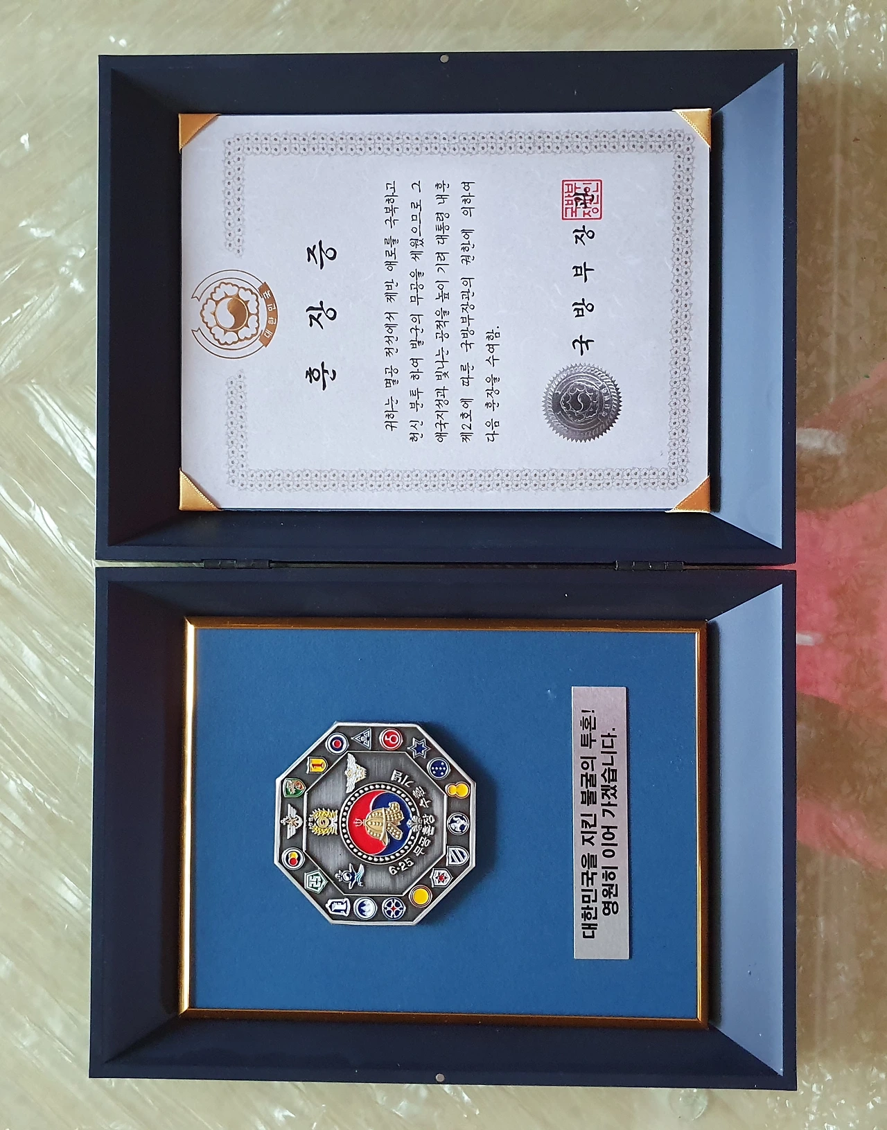 "아버님께서 6.25 무공훈장을 받게 되셨어요 그동안 유가족을 찾다가 사위님 전화번호를 알게 되어 연락드렸어요. 아버님과 어머님 합장도 현충원으로 이장을 할 수 있어요. 훈장을 어떻게 보내드릴까요? 군에서 직접 가지고 갈까요? 가까운 군대나 시청에 가서 받으시겠어요? 택배로 보내드릴까요?ㆍㆍ ㆍ "