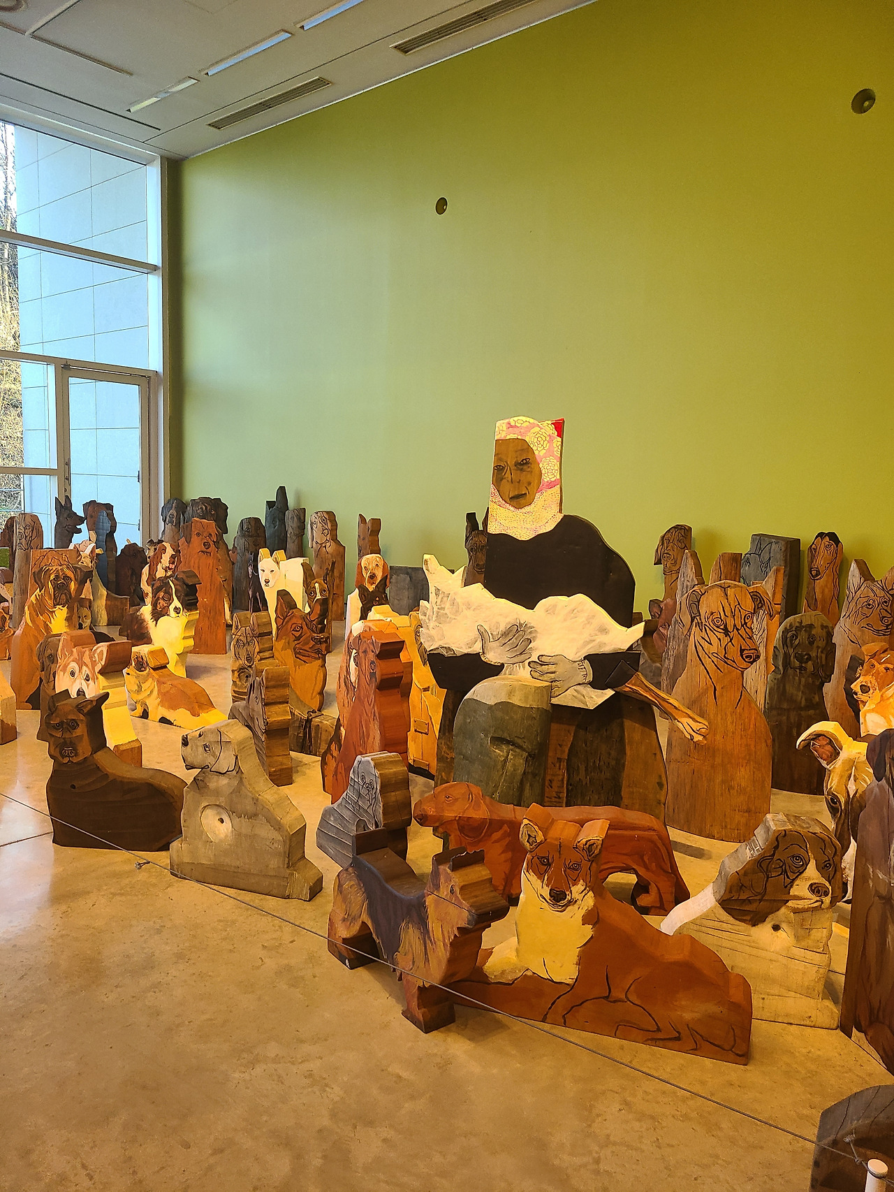 그의 나이는 현재 여든이 넘는다. 나는 그의 작품을 2023년 11월과 12월 사이 대구미술관에서 세 번 만났다.(제23회 이인성미술상 수상자전으로 2023년 12월 31일까지 대구미술관 2층 전시실에서 계속된다.) 그곳에서 근래 몇 년 동안 작업을 계속하고 있는 <여성독립운동가 채색 초상화> 스무여 점, 1,025마리 유기견을 나무에 채색해 만들어낸 작품을 전시한 <1,025: 사람과 사람 없이> 등 굵직한 테마 전시가 있었다. ‘나이’라는 숫자가 창작활동을 하고 있는 예술가 앞에서 납작 엎드려 있는 모습을 확인한 것만 같았다. 위대한 성실성이다.