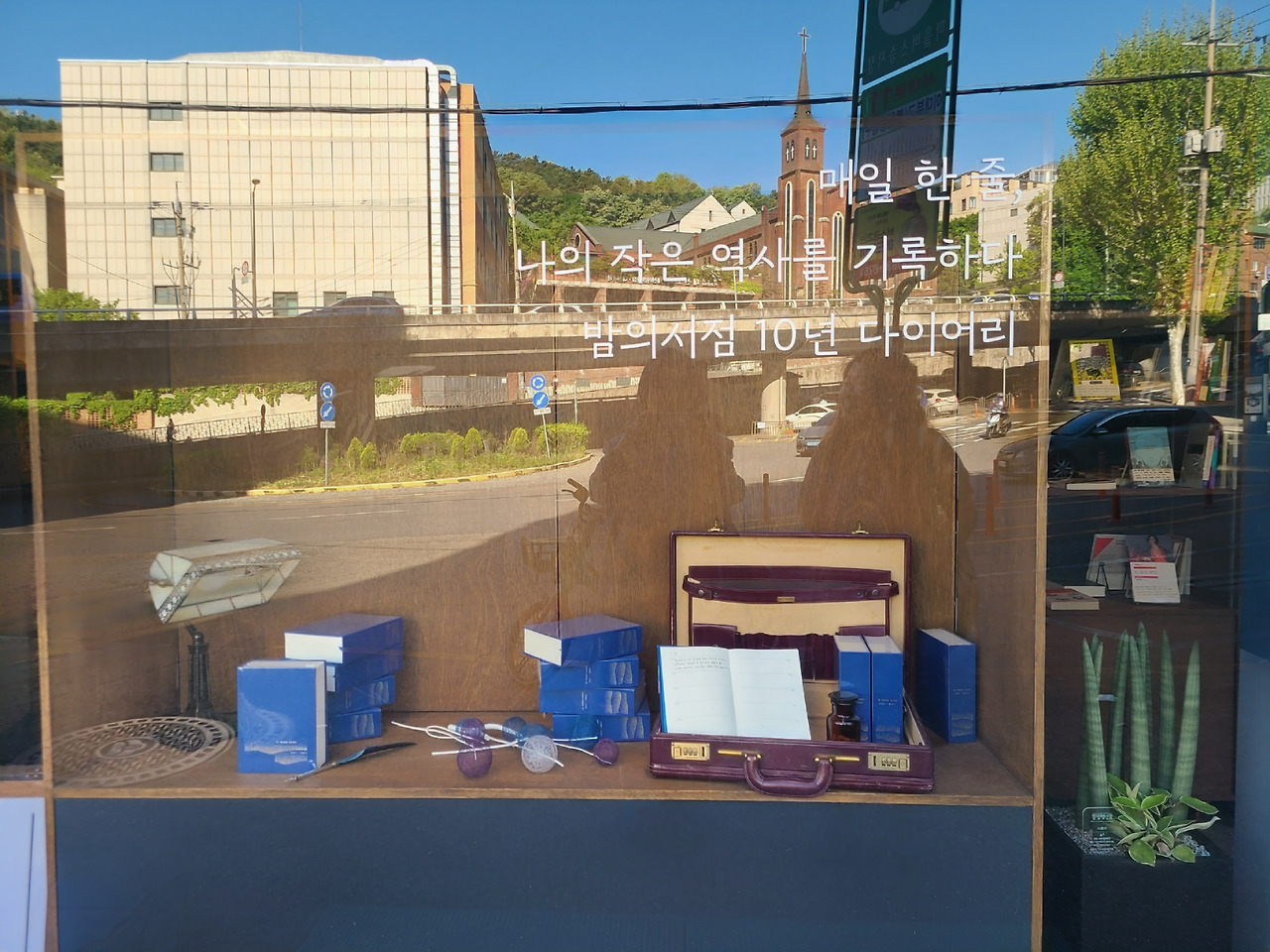 너무 경탄한 탓인지 쇼윈도 안 내용은 보이지 않고 유리에 비친 바깥세상만 커다랗다.