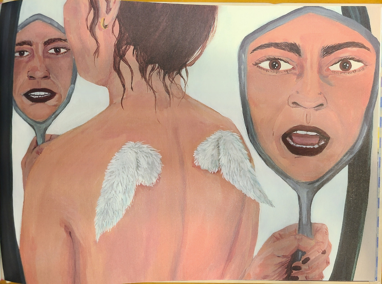 그녀는 커다란 날개를 갖게 되었다. 그녀는 날개를 퍼덕였다. 몸이 붕 떠올랐다. 그녀는 창밖으로 날아갔다.