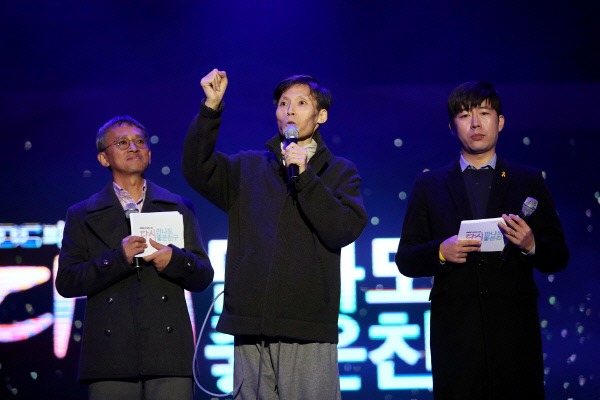 살이 많이 빠진 수척해진 모습으로 ‘MBC 노조 파업 콘서트’에 깜짝 출연해 “언론이 질문을 못 하면 민주주의가 망하는 것”이라던 그의 외침은 많은 언론인과 시민을 각성시켰다.